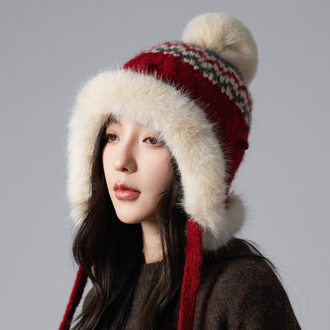 毛绒护耳帽女秋冬季加厚加绒保暖雷锋帽子东北防寒百搭针织套头帽
