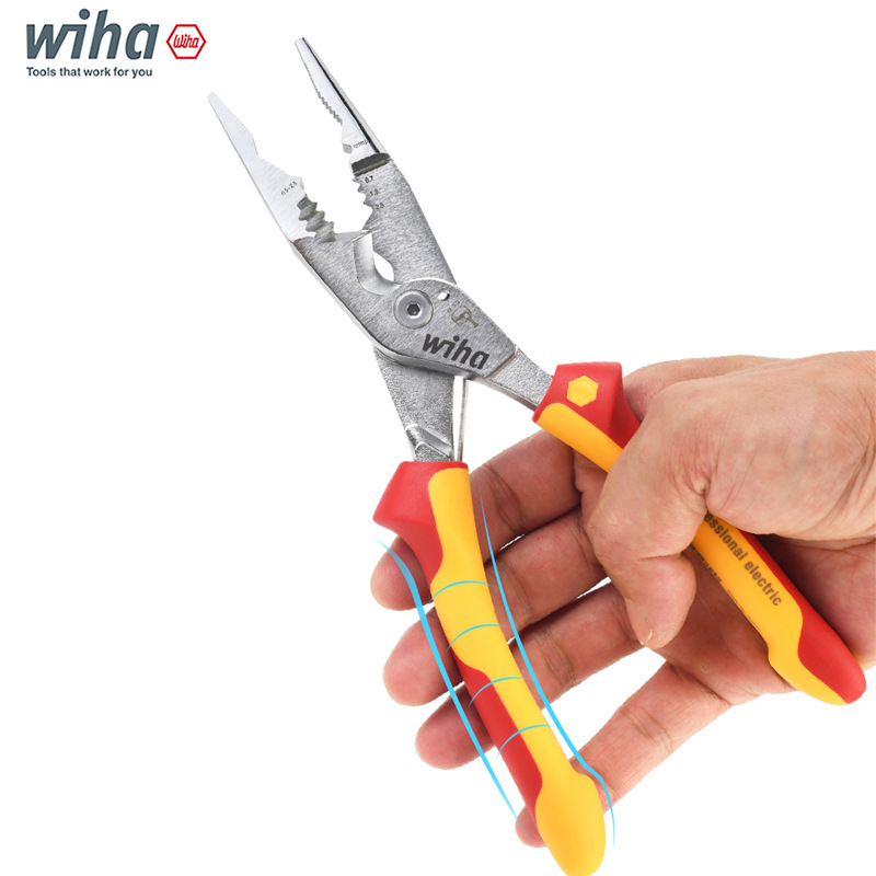 德国wiha威汉电工钳8合1多功能尖嘴剥线剪线压接钳进口绝缘电缆钳