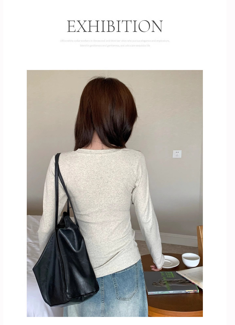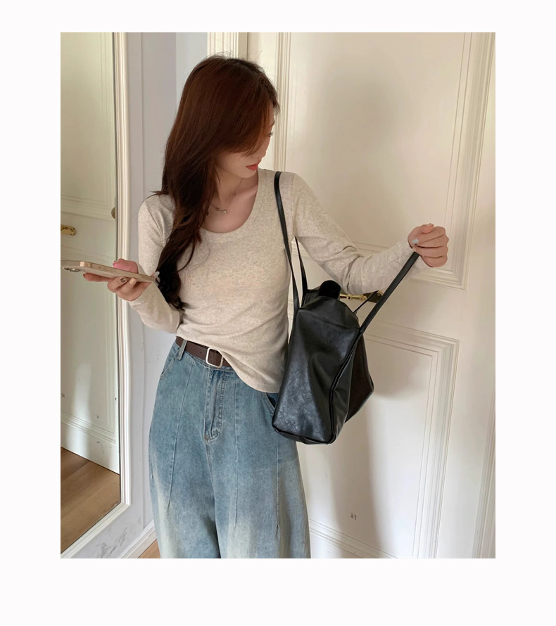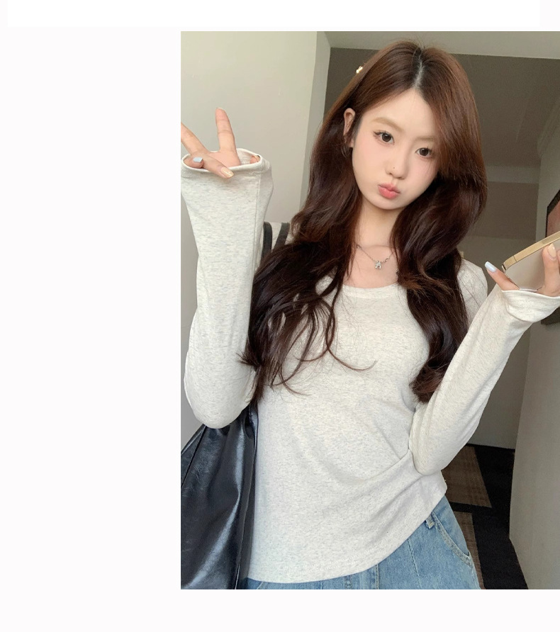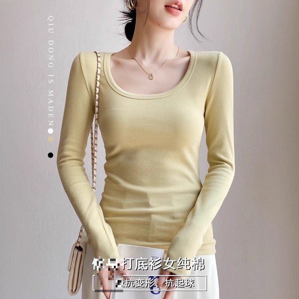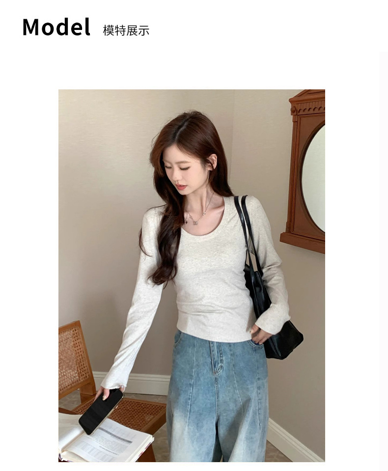 棉质螺纹u领打底衫女2025早秋冬新款修身内搭洋气短款长袖T恤上衣