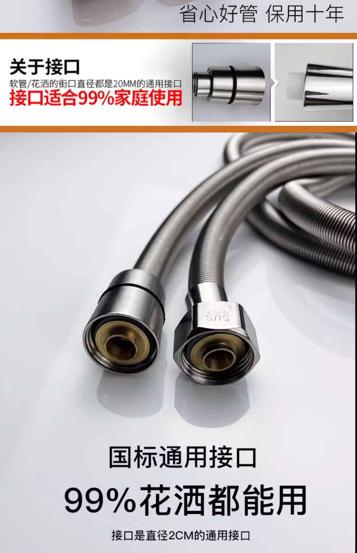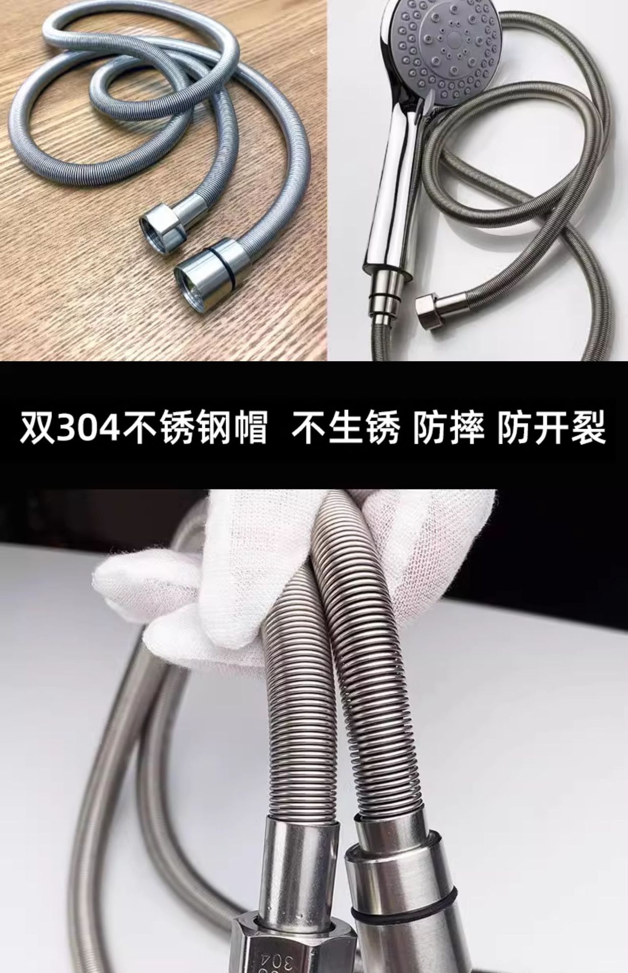 304不锈钢软管浴室热水器淋浴1.5/2米花洒喷头加密防爆管波纹管