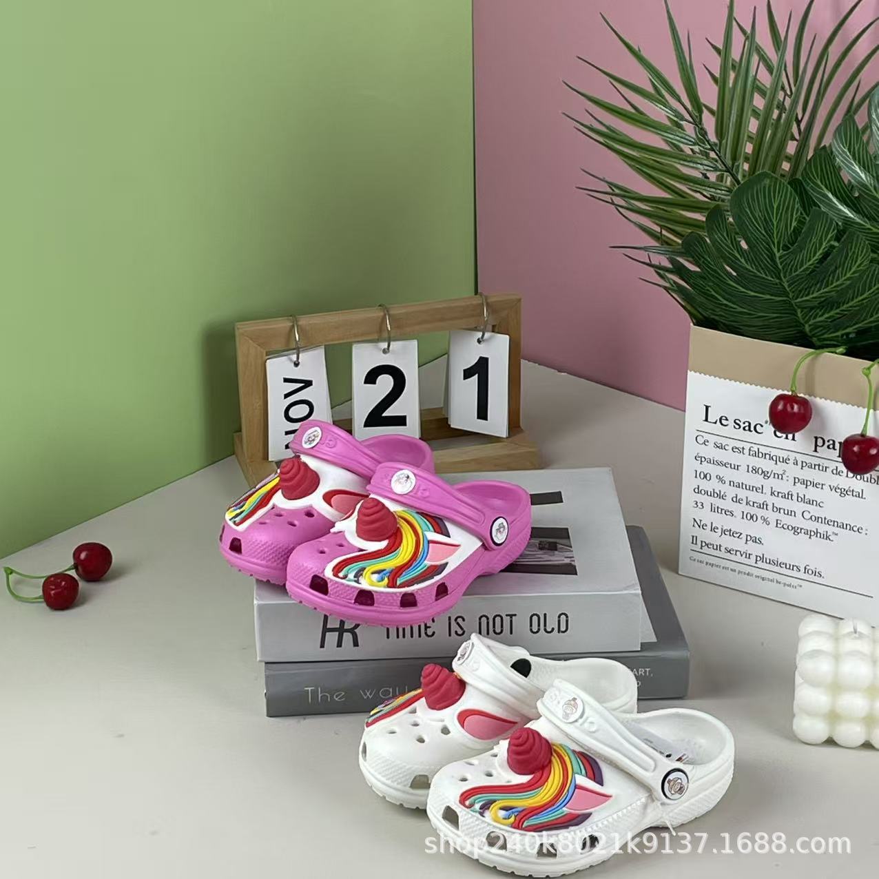 cross 儿童洞洞鞋立体独角兽有标包头男女防滑软底沙滩拖鞋可批发