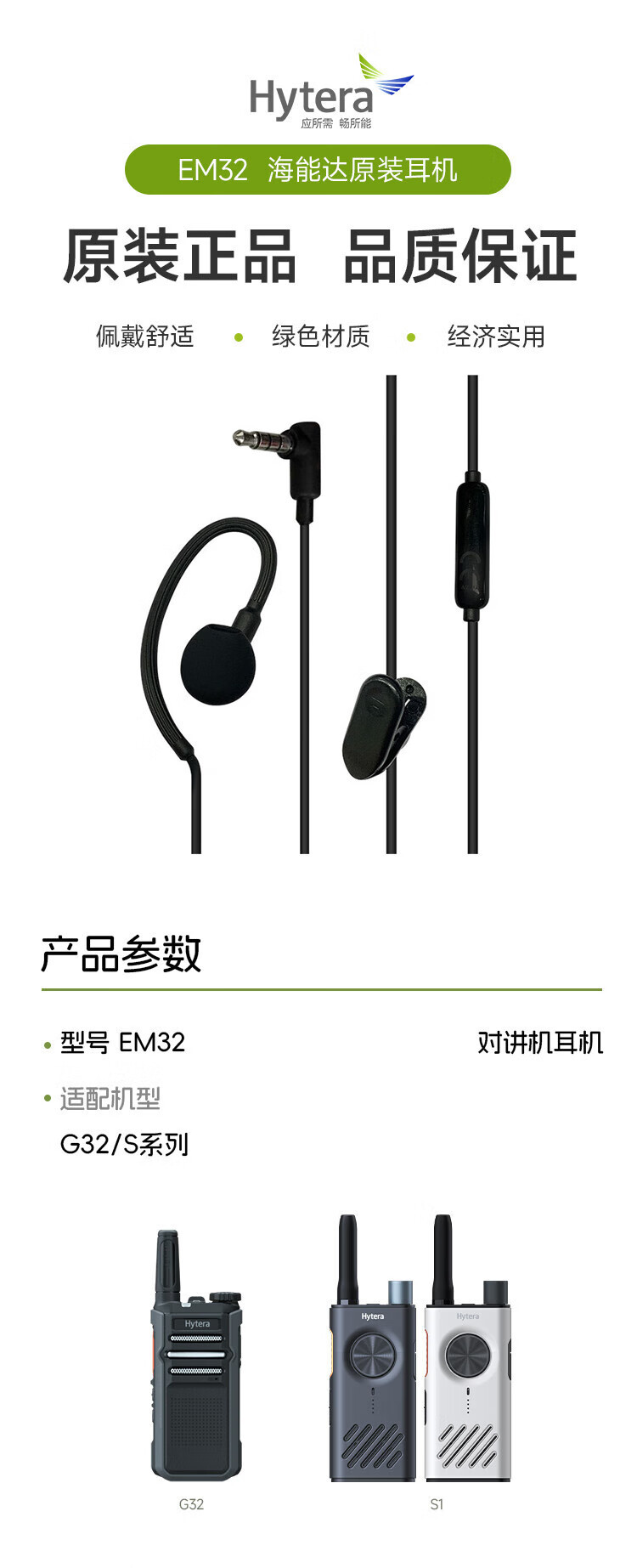 海能達EM32イヤホンG32/G36インターホンイヤホン