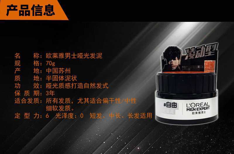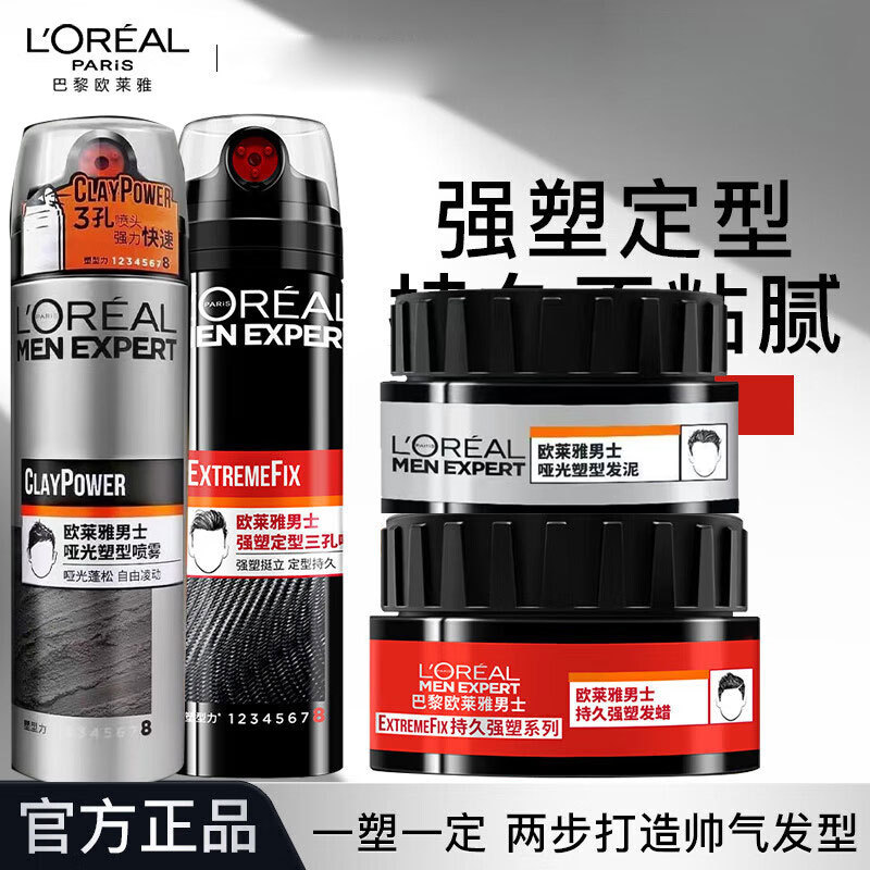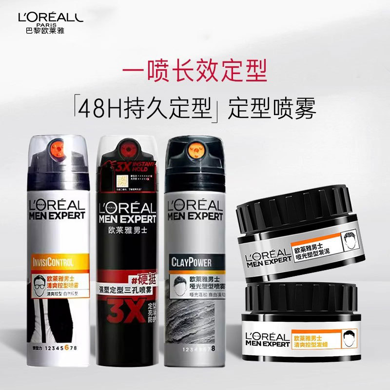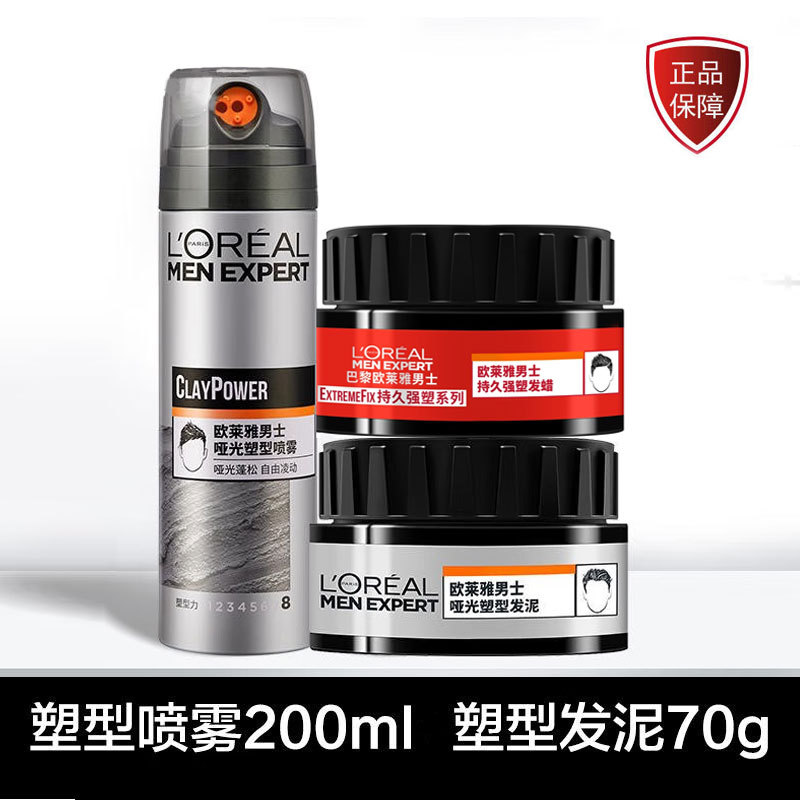 欧莱雅男士哑光喷雾发泥套装持久定型自然层次感清爽蓬松易塑性