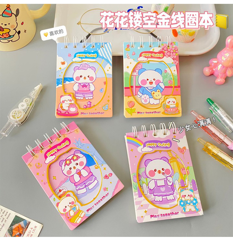 新しい縦版の透かし彫りの線の本のかわいい漫画の箔押しの小さいノートは携帯して小さいサイズのノートを持って卸売りします。