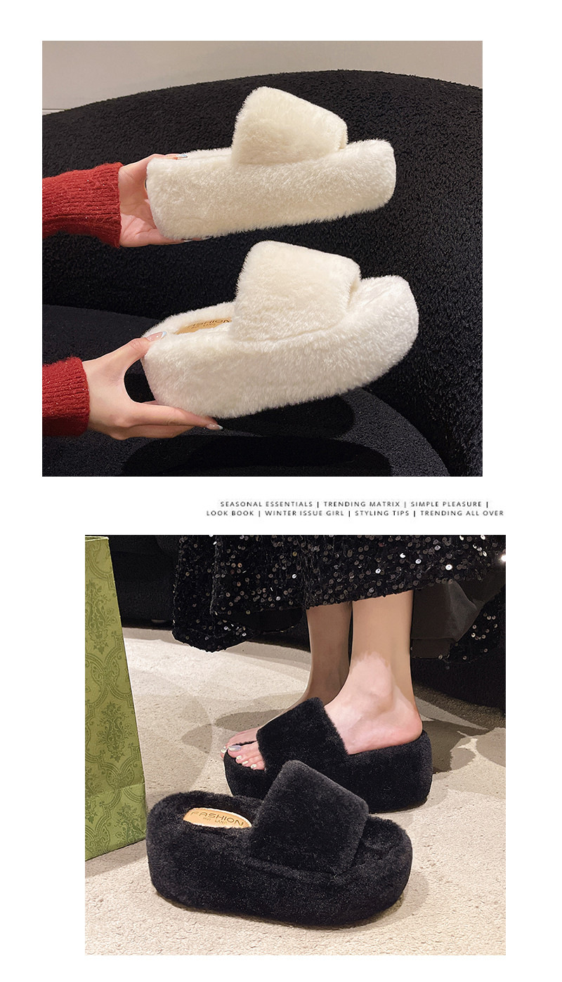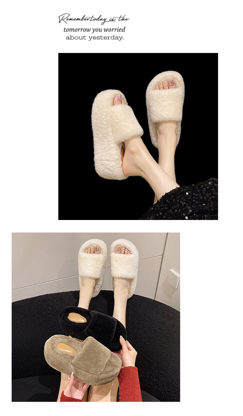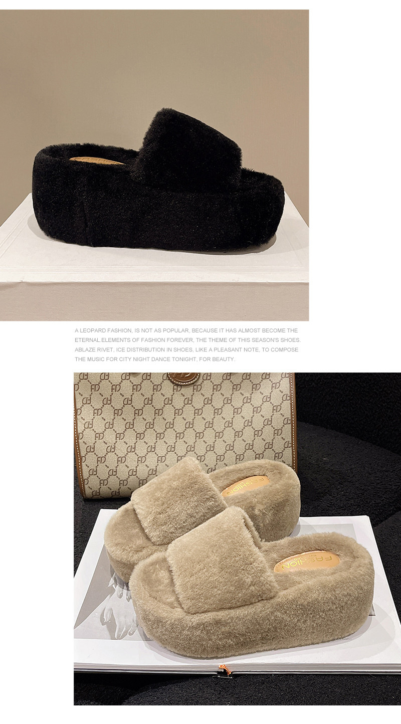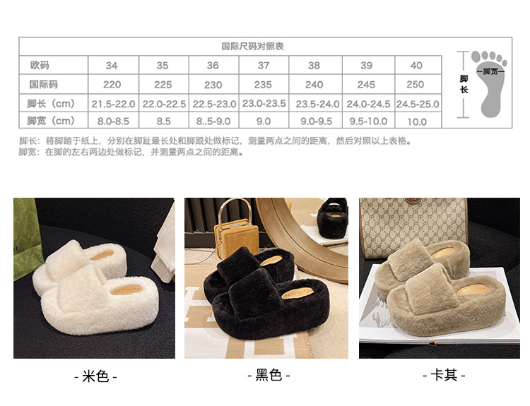 7センチの毛羽立ち靴の女性は2023年にネットレッドが起爆した秋の冬に出て厚い底のぬいぐるみの綿のスリッパを履いている