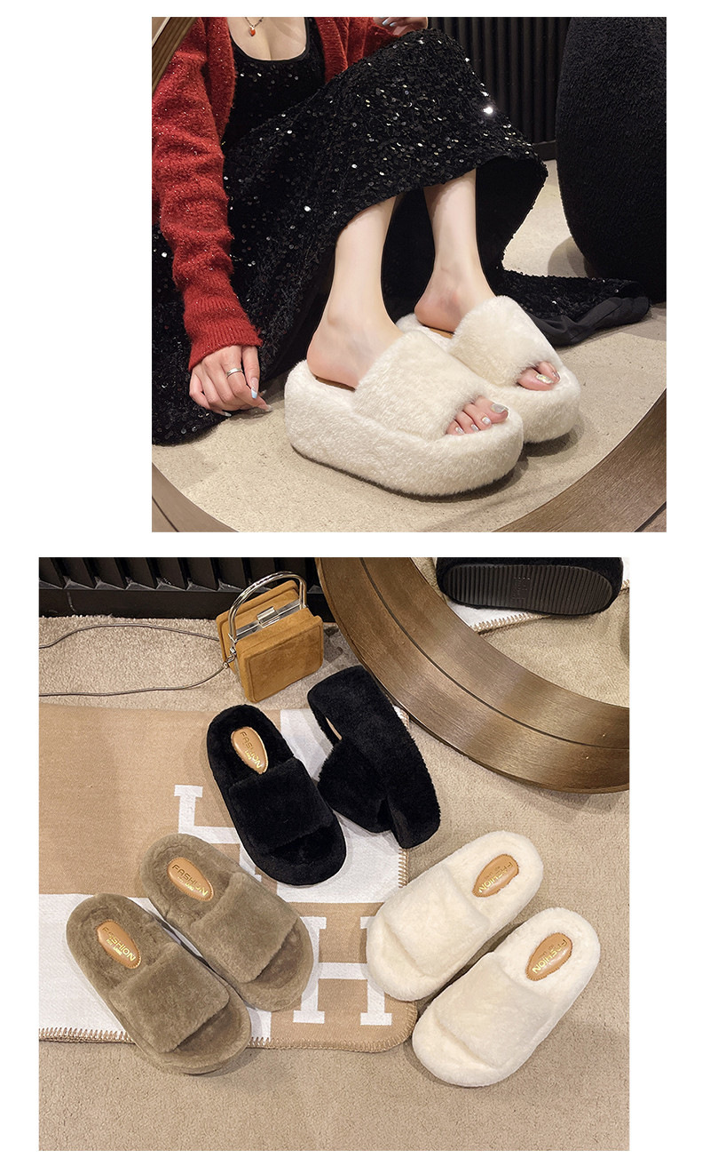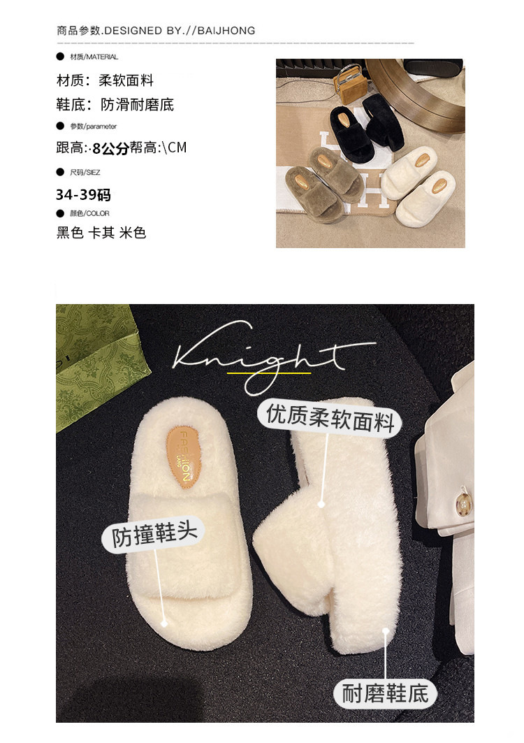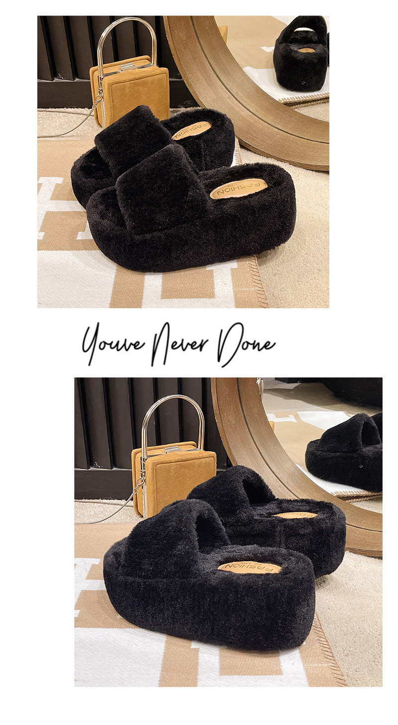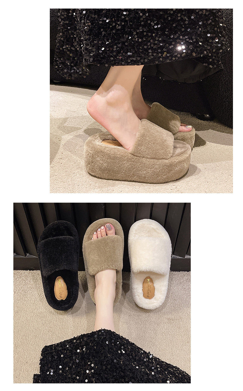 7センチの毛羽立ち靴の女性は2023年にネットレッドが起爆した秋の冬に出て厚い底のぬいぐるみの綿のスリッパを履いている