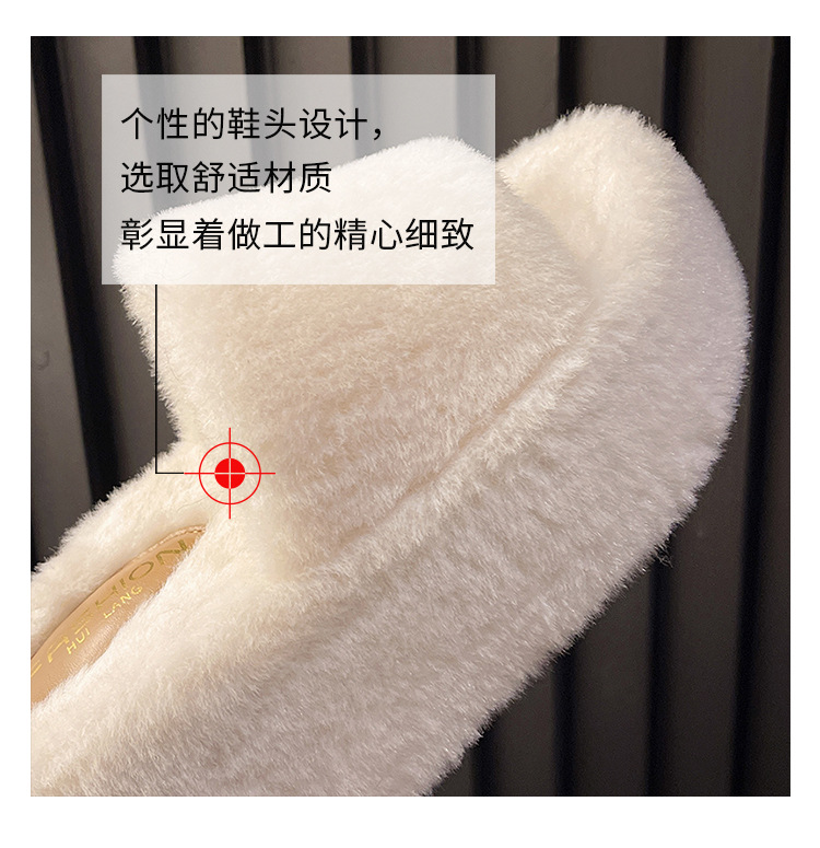 网红爆款简约百搭毛毛拖鞋女外穿2025年秋冬厚底一脚蹬H棉拖鞋女