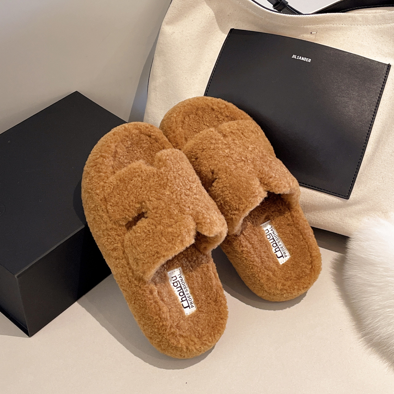 女性が外で履くための毛皮のようなスリッパ 2025 新しい韓国スタイルのイントレンディな靴秋と冬のクロス厚底綿スリッパ秋と冬