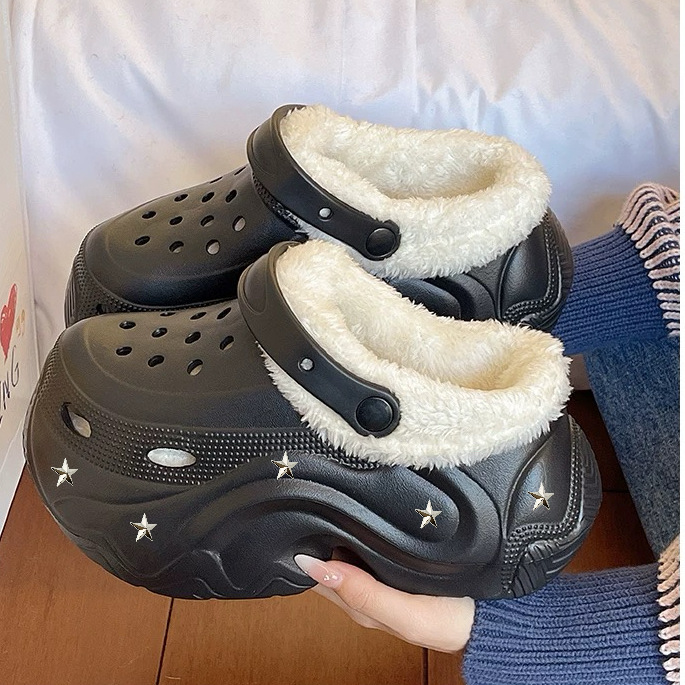 星星洞洞鞋女冬季室内外穿防滑高跟洞洞鞋高级感加绒加厚保暖厚底