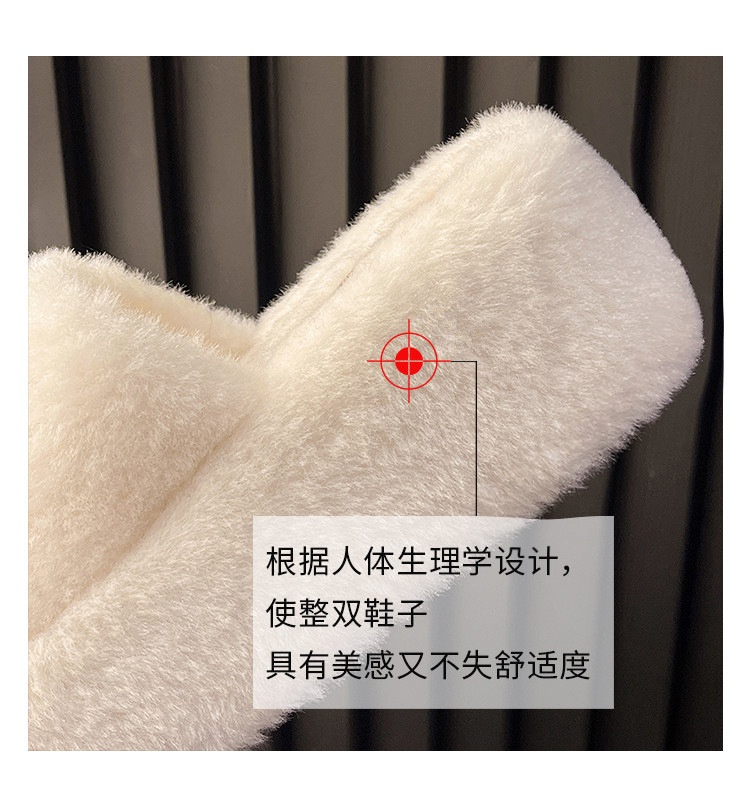 厚底交叉带毛毛拖鞋女秋冬外穿2025新款松糕厚底增高软底家用棉拖