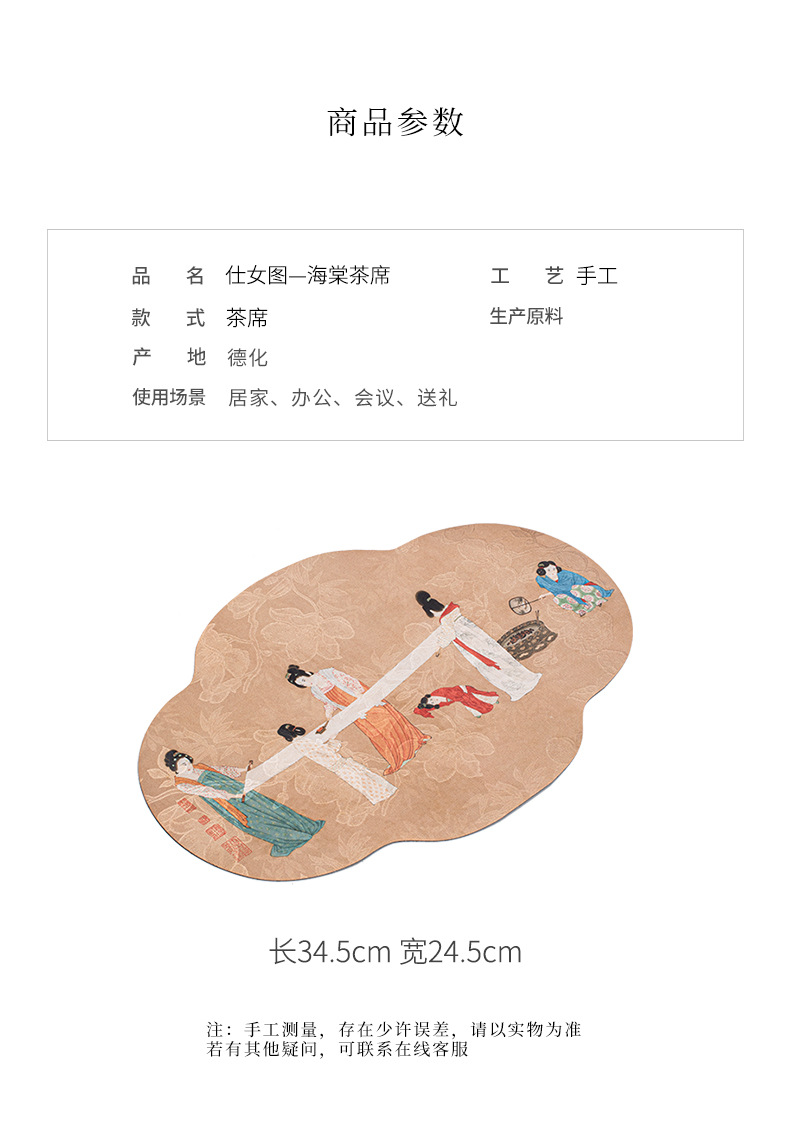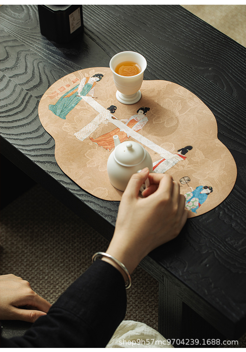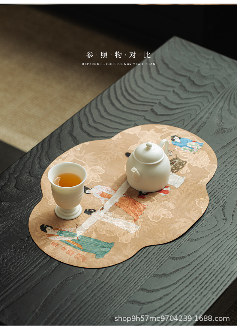 禧マグネシウム新中国式禅意仕女図茶席防水乾泡席茶芸テーブル面茶テーブルマット断熱マット