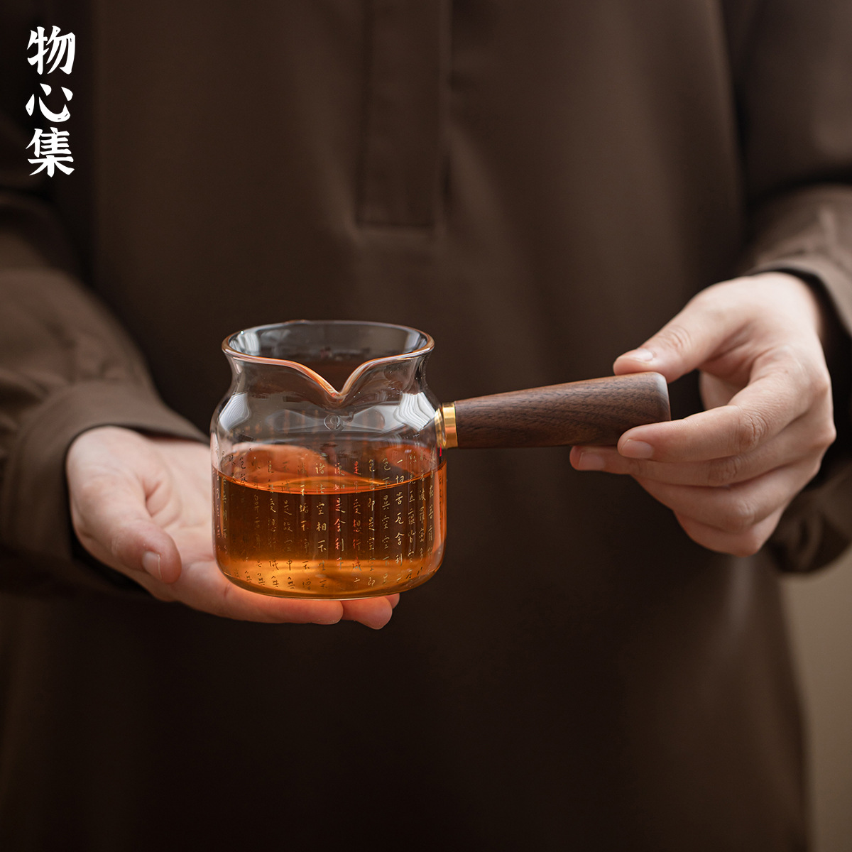 物心集耐高温玻璃侧把公道杯功夫茶具般若心经耐热公杯透明分茶器