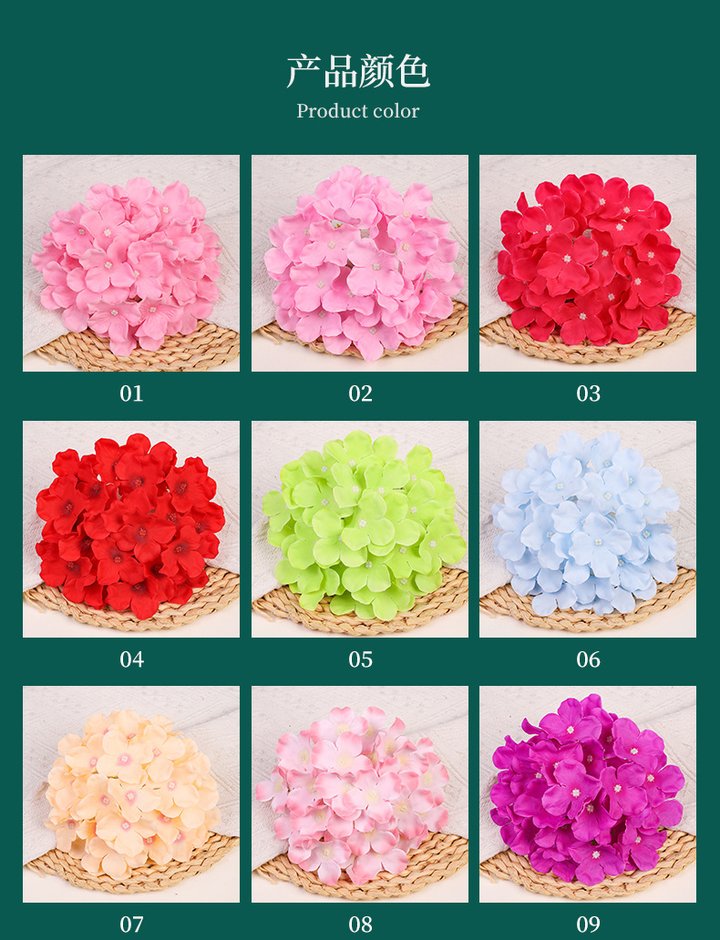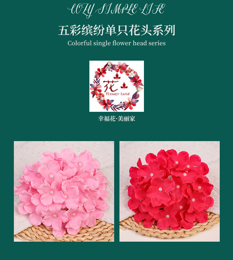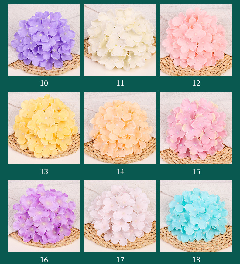 造花アジサイの花頭、ウェディング用フェイクシルクフラワー、ウェディングフラワーアレンジメント、DIYフラワーヘッドドレス、撮影用小道具、人工手作り