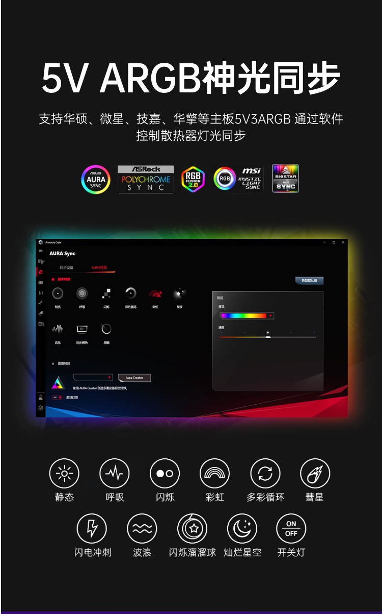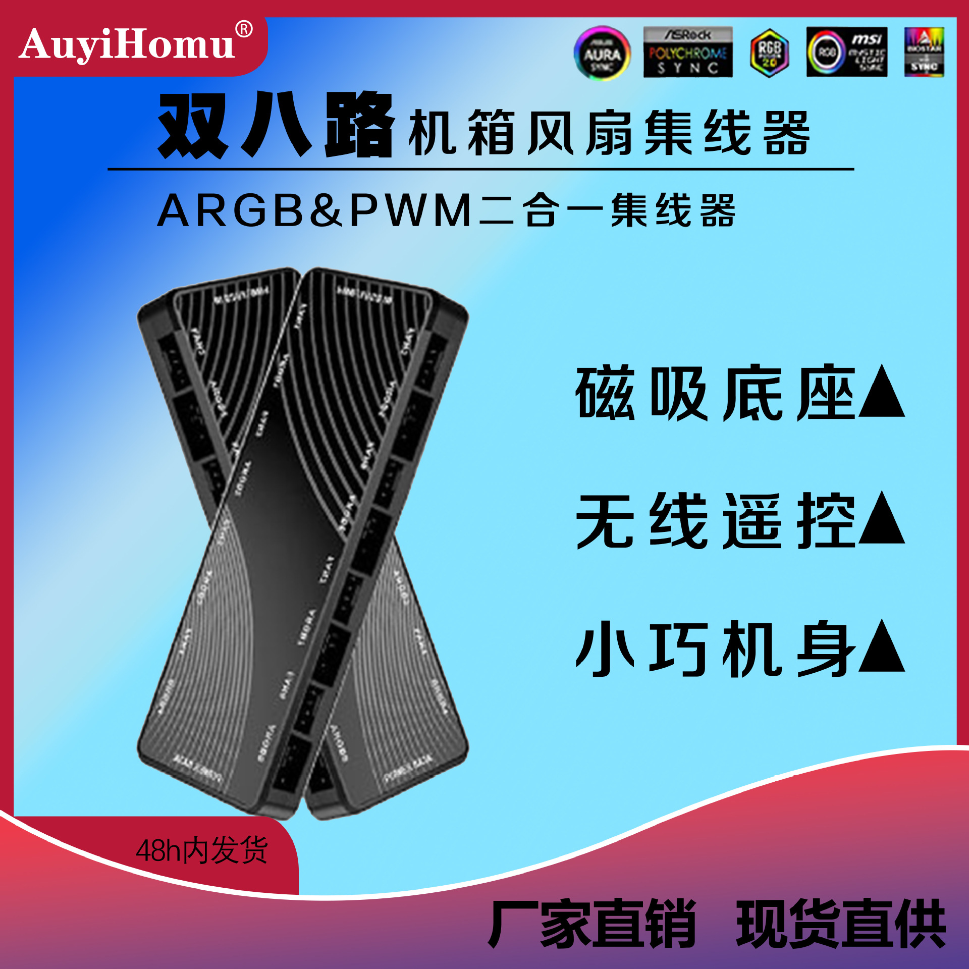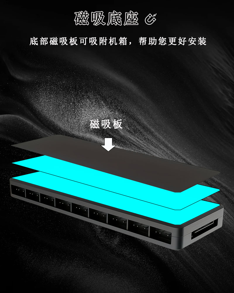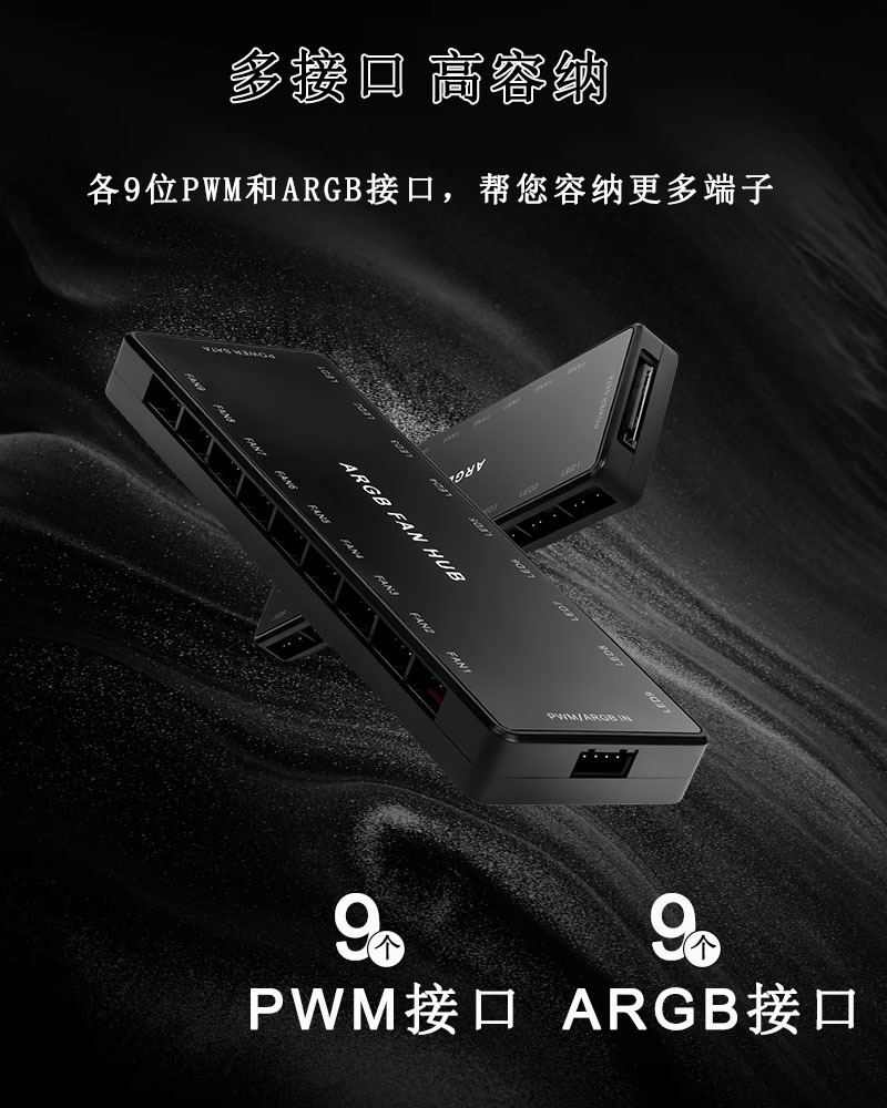 AUSEN澳申PWM温控集线器 ARGB神光同步机箱风扇二合一遥控控制器