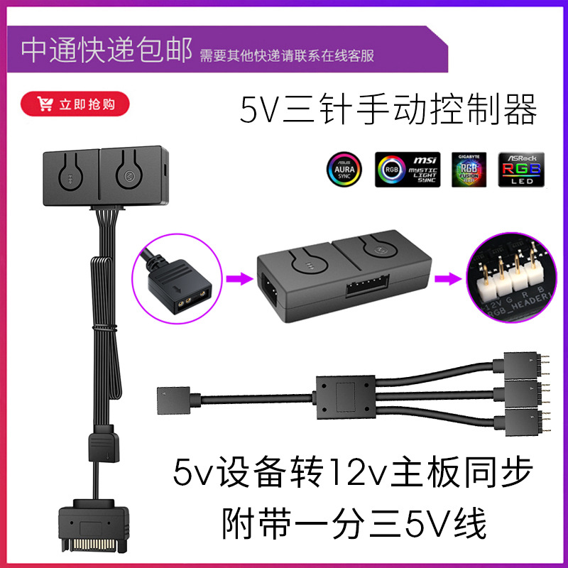 ARGBコントローラ5v 3針回転SATA給電手動ボタン調光器3pin神光同期コントローラ