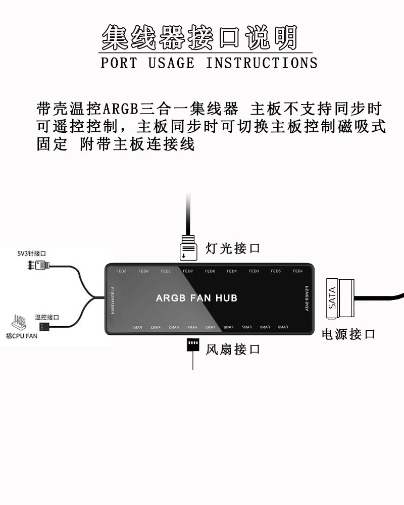 同期マザーボード5V3ピンARGBコントローラー1対10シンライト同期拡張照明コントローラーSATA電源
