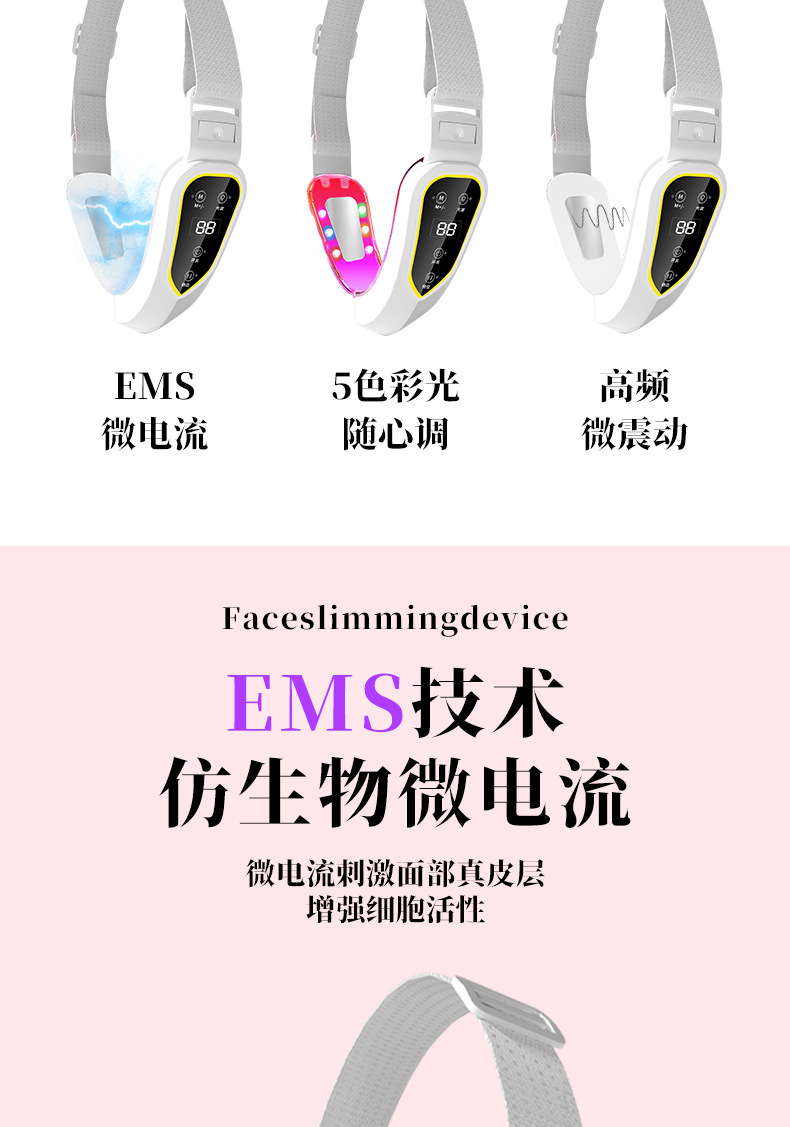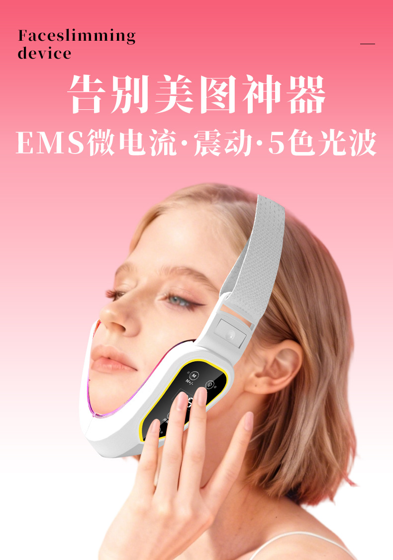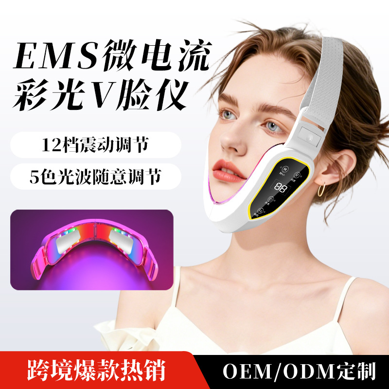 越境で人気のEMS微電流カラーライトVフェイスデバイス、二重あごの引き締めとリフトアップ、経絡振動スマート美容機器