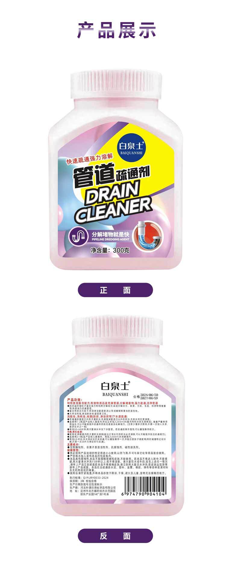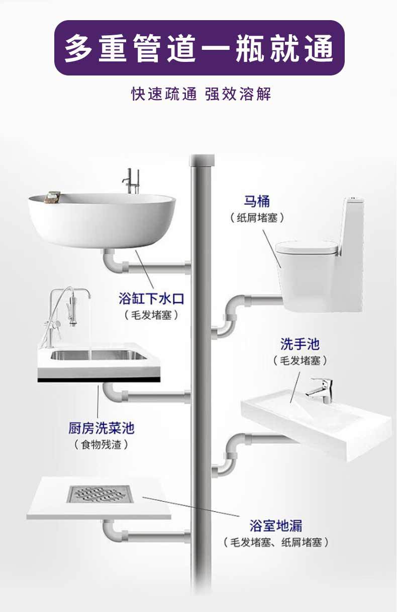 兔之力管道疏通剂厕所马桶地漏厨房下水道溶解堵塞300g/瓶*3瓶