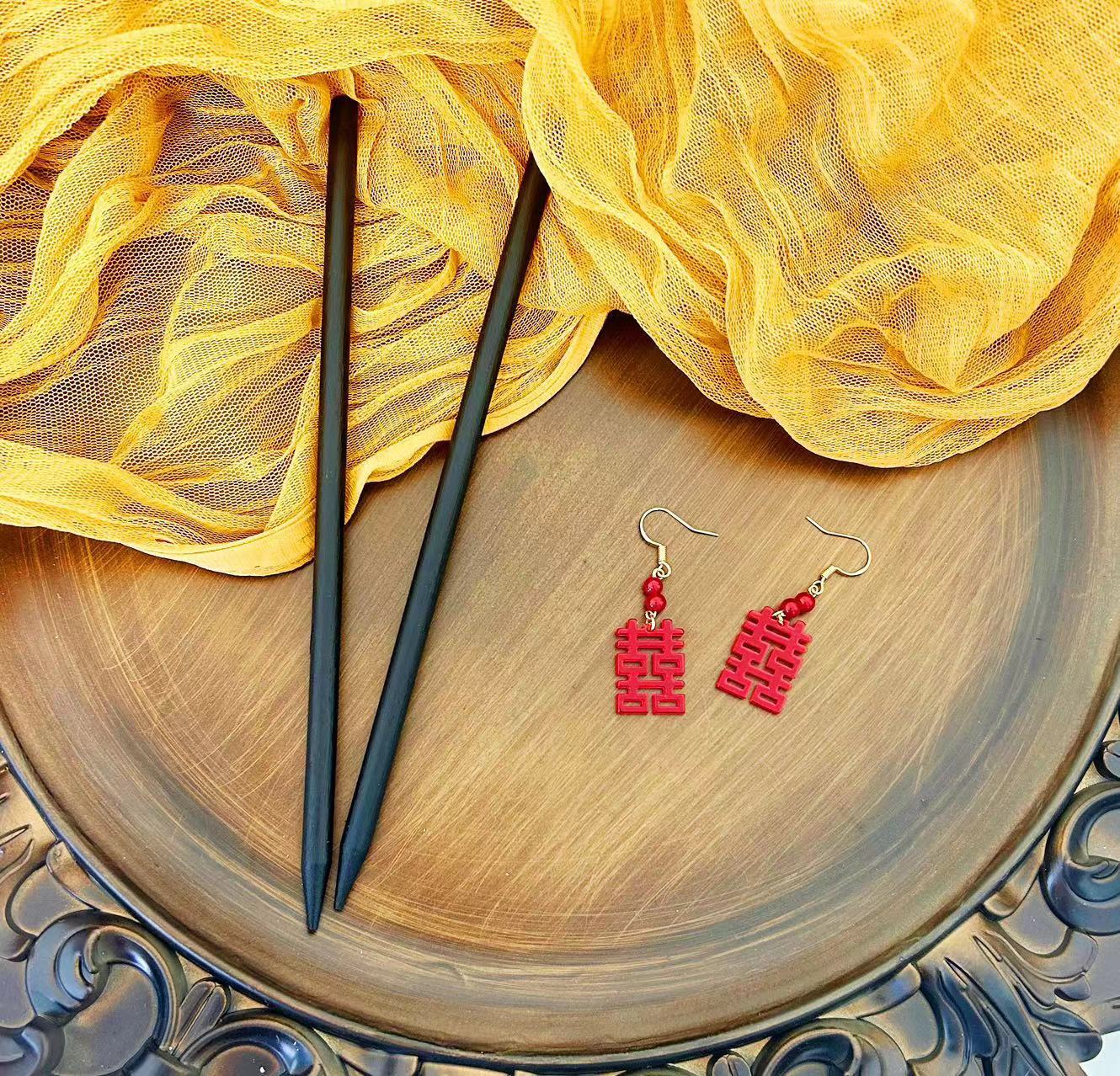 カラー 大図ペア,康康の金の左右の鳥,韓子先生の小鳥図,大きな鳥の図,大小の鳥が一羽ずつ左右にランダムに,大きな鳥のペア,喜字ヘアピン,フロントチェーンのバックチェーン,ヘアピン喜字イヤリング
