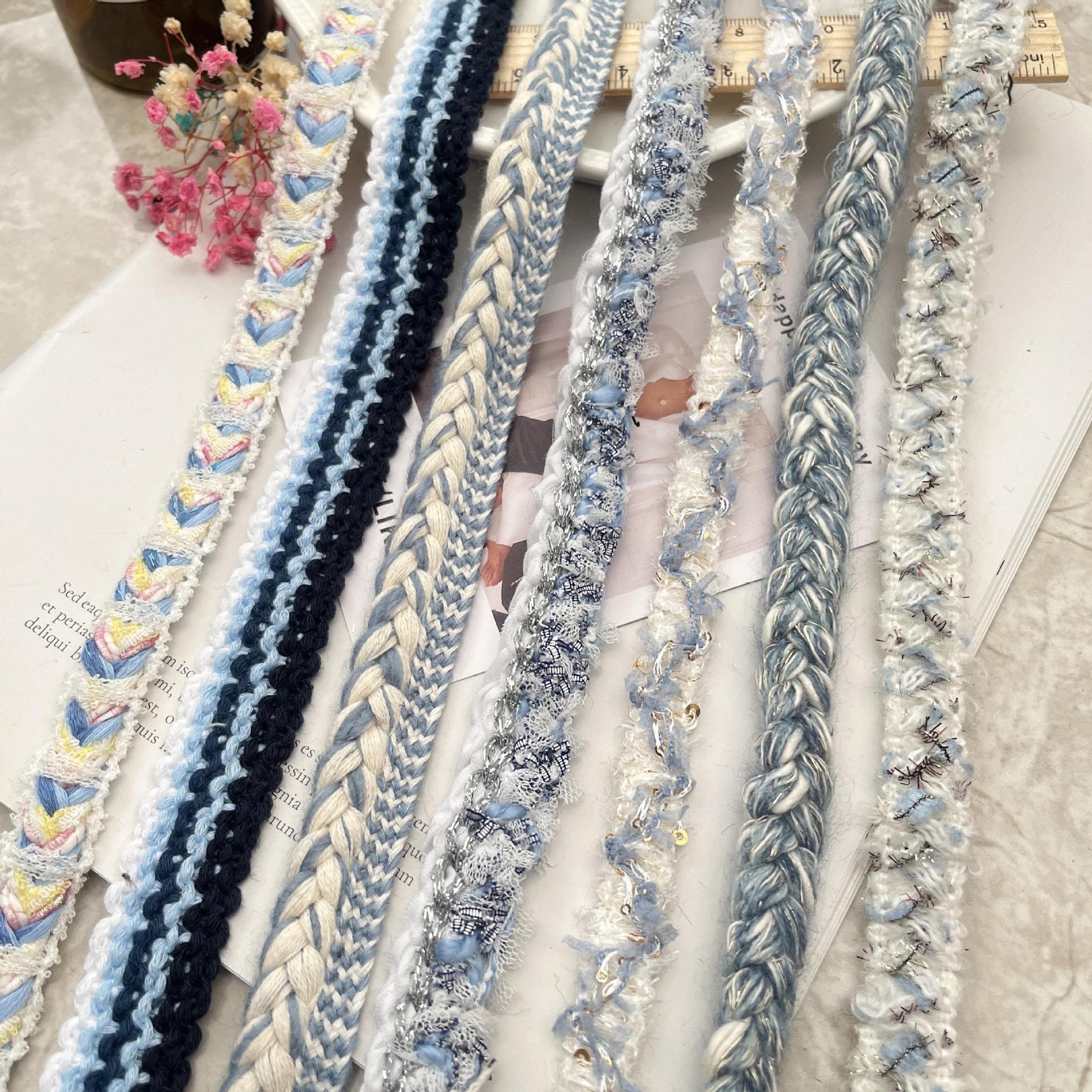 秋冬モデルの青い白いシリーズの小さい香りの風のレースの補助材料のコートのドアの襟のポケットの装飾の縁の条の縁のリボン