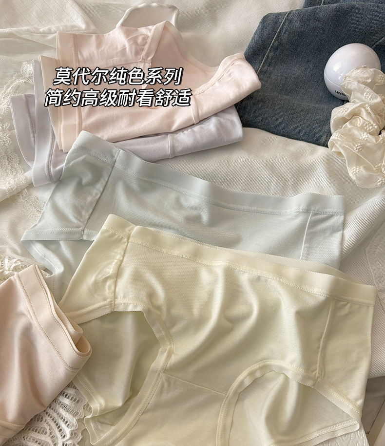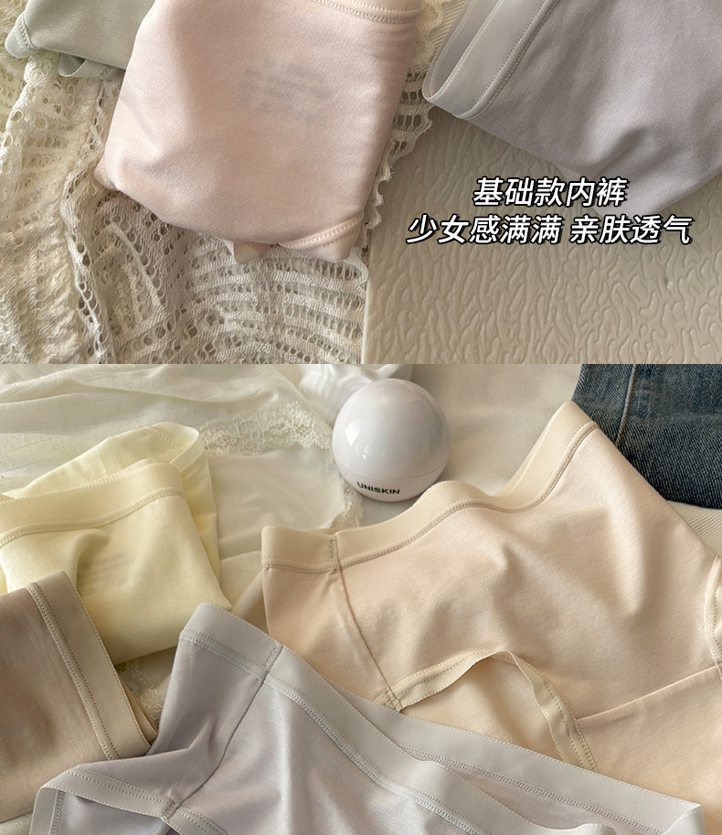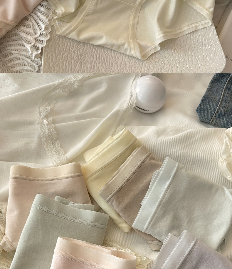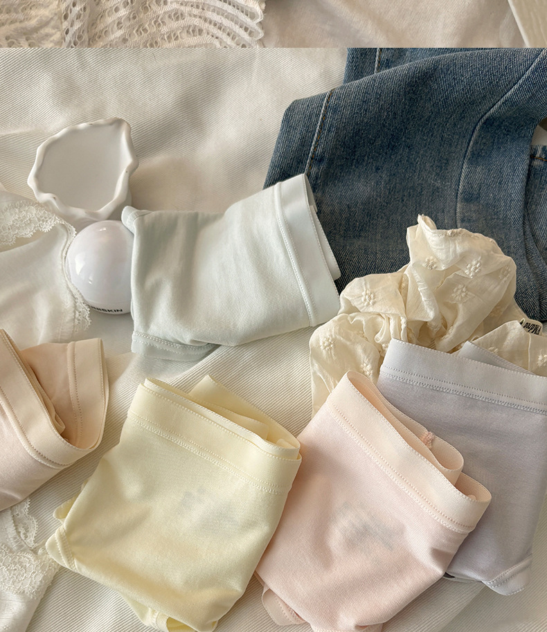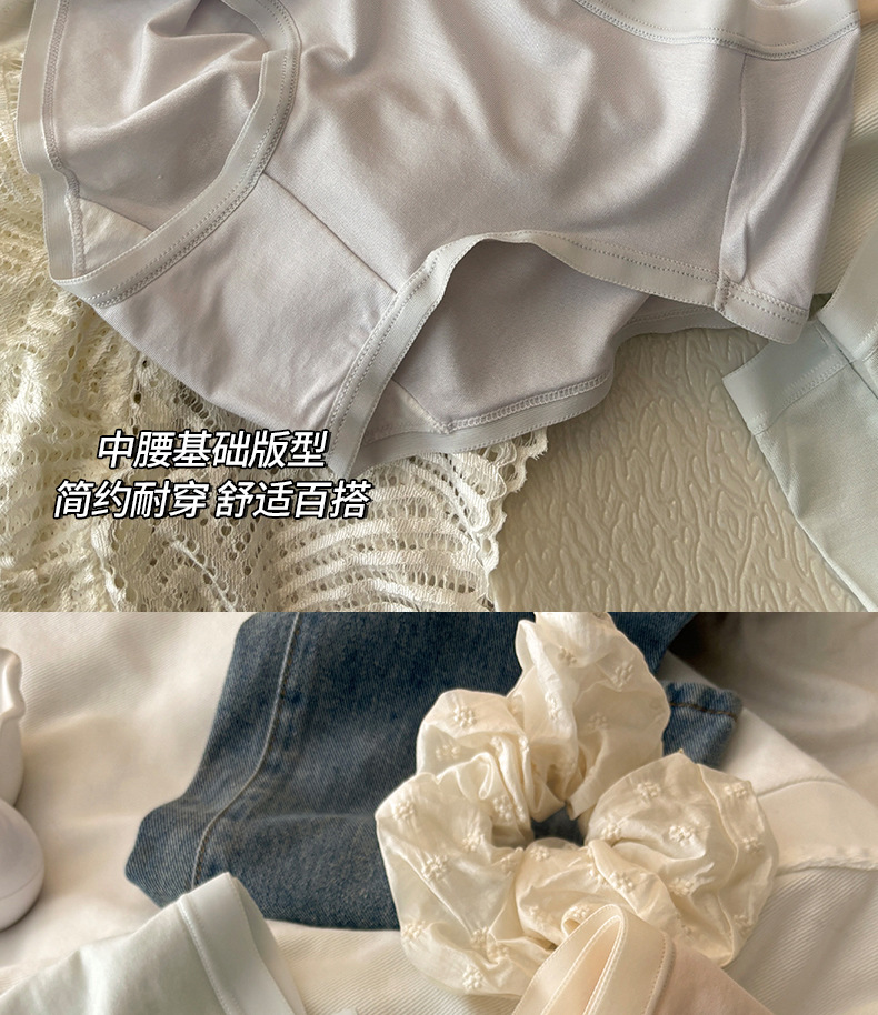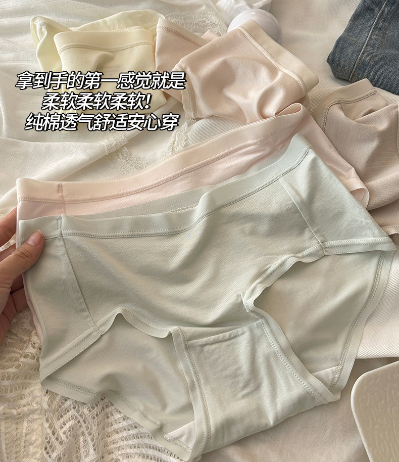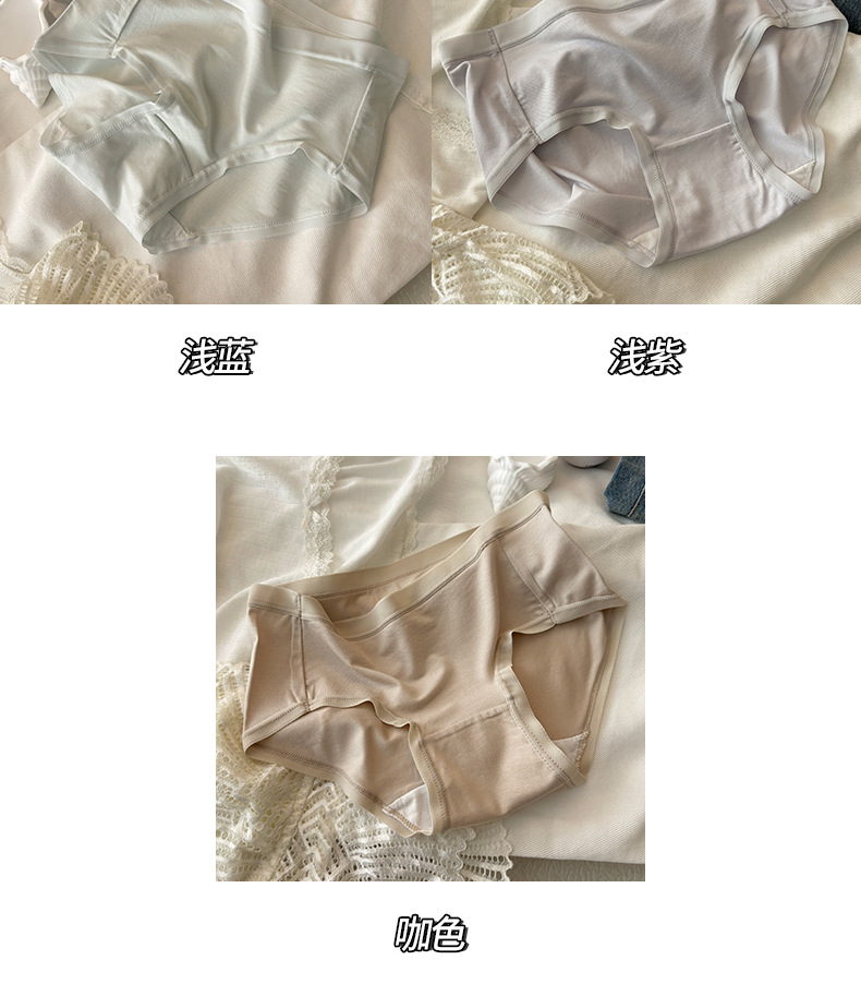 10Aグレードのミニマリスト風インスタイル無地コットン通気性抗菌女性用下着、ミッドウエストヒップカバー女子三角パンツ