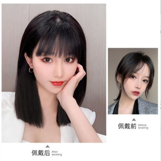 かつらの女性の全頭のショートヘアの韓国式パーマは空気の前髪のboboの髪の毛のカバーの1件の代行の工場の卸売りを染めます。