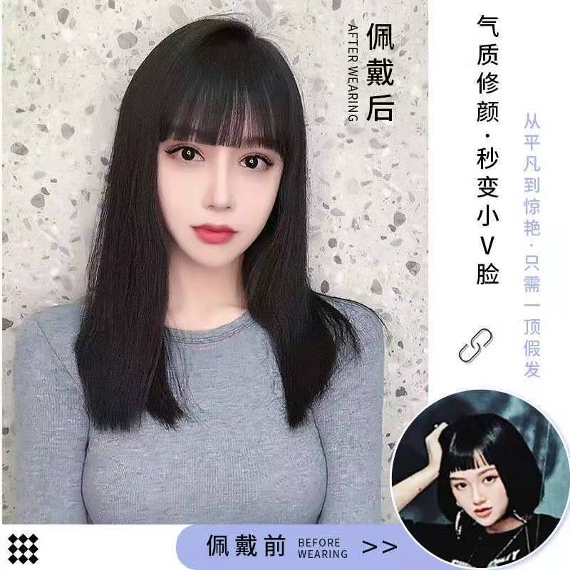 女性用ミディアムロング巻き毛梨花ヘアエアバングクロスボーダー人気ウィッグセット耐熱性シルク化繊ウィッグ