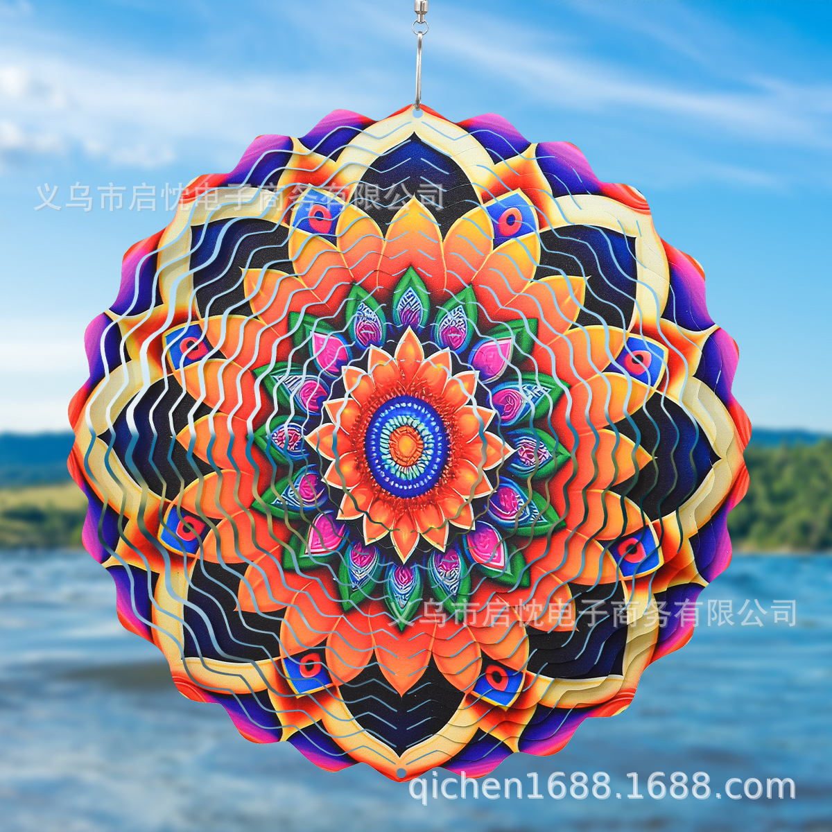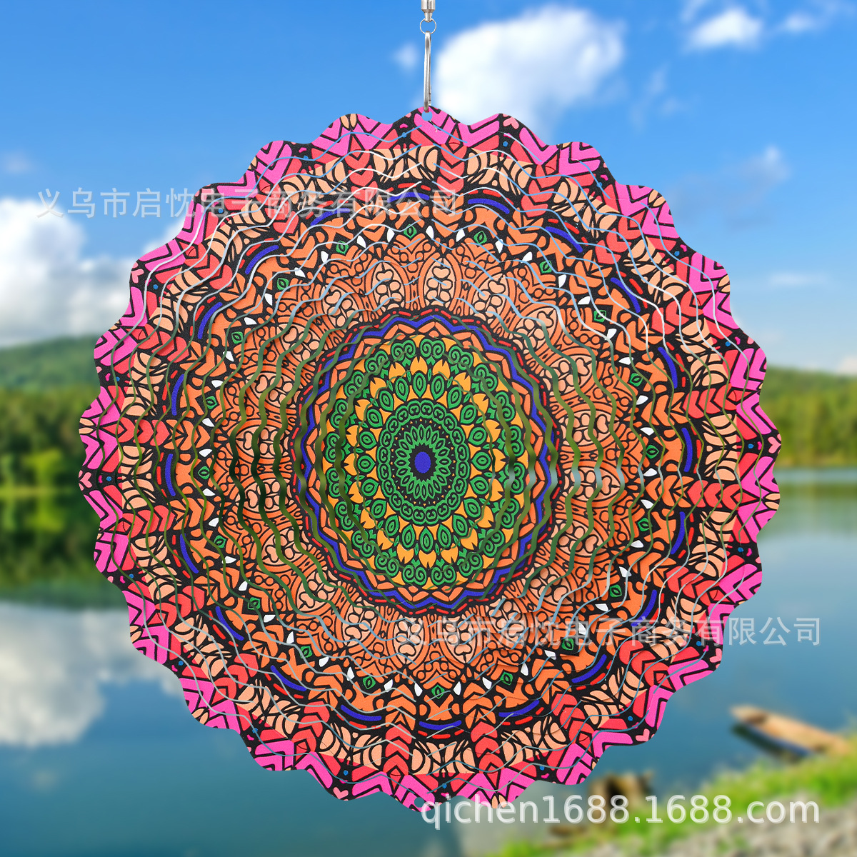 跨境新款金属彩色曼陀罗风铃3D动态旋转风铃庭院花园装饰高级感