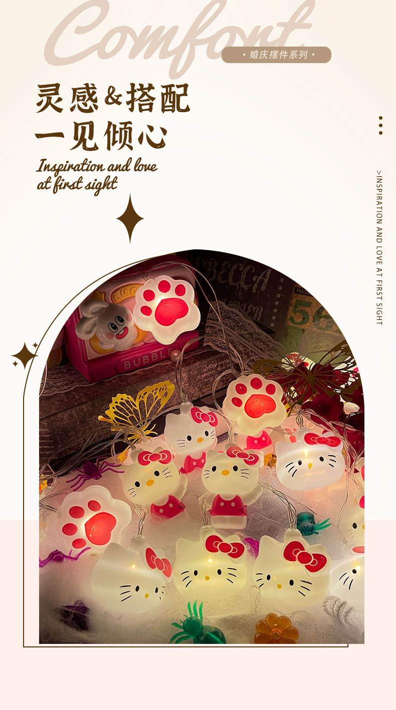 新品ledハローキティライトストリングクリスマスクマ猫装飾ライト子供部屋誕生日会置物かわいい猫爪