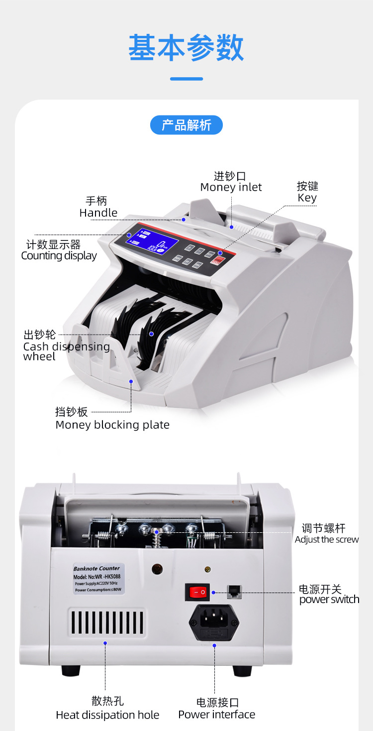 8088 多国通貨紙幣計数機、米ドル、ユーロ、外国通貨紙幣計数機、国際版、国境を越えた外国貿易用