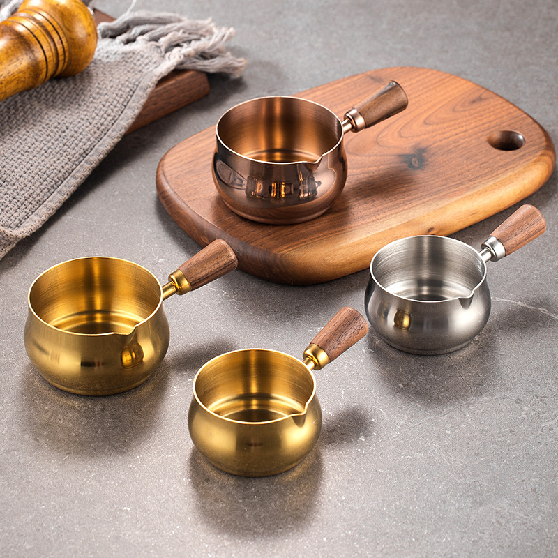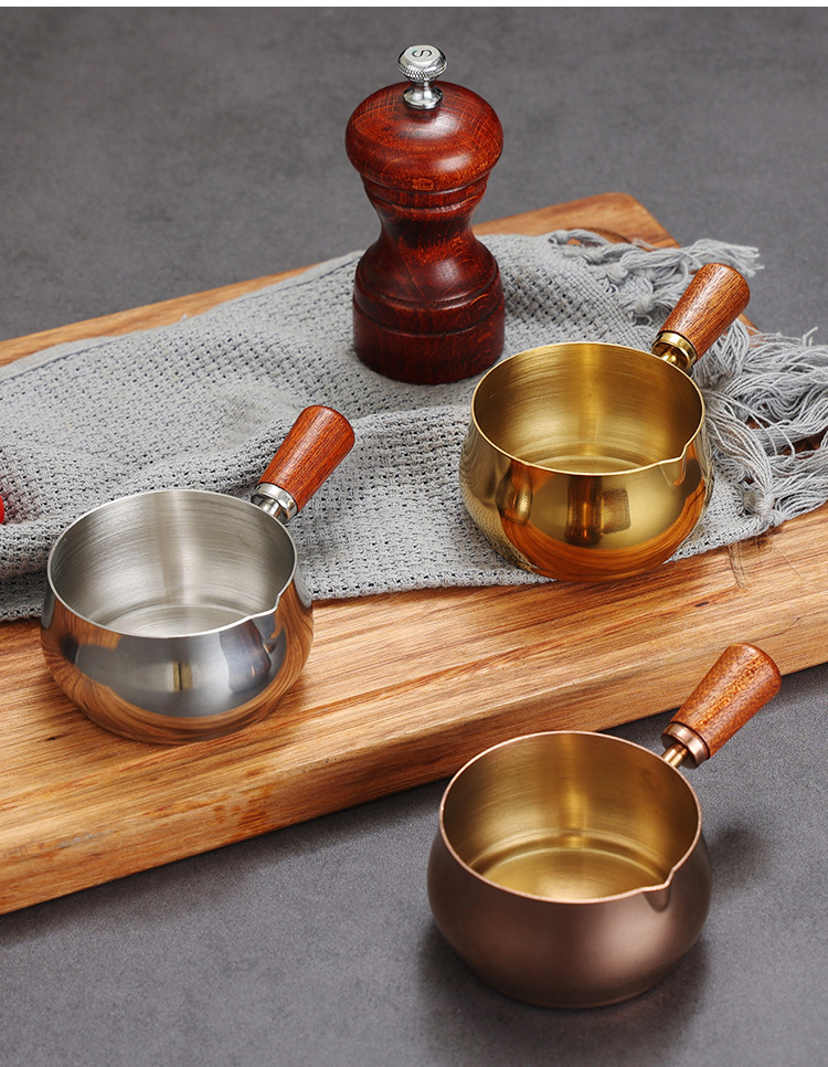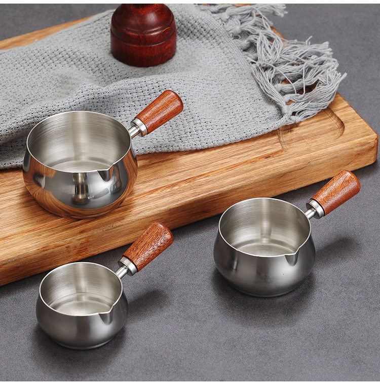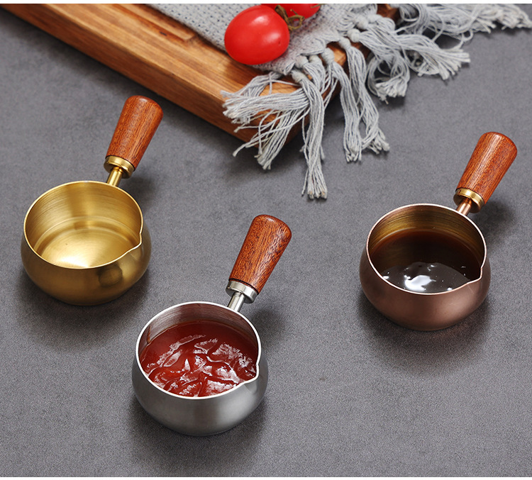304ステンレスのソースコップの木の柄の取っ手は皿のレストランのステーキのソースのコップのケチャップのコップの調味料の碗をつけます。