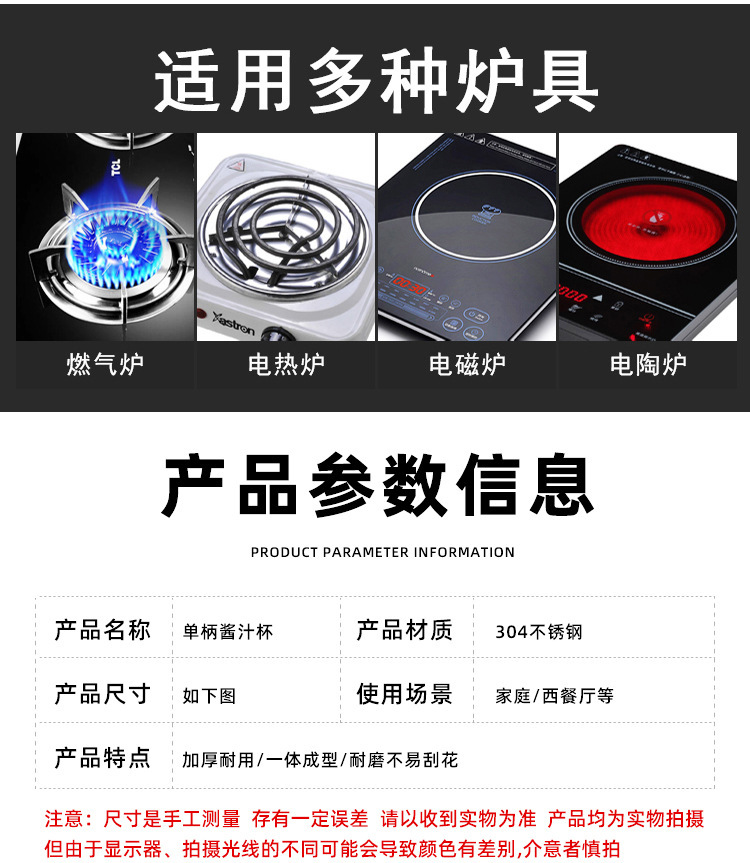304不锈钢酱汁杯西餐牛排酱料杯木柄调料小碗番茄沙拉蘸酱碟子