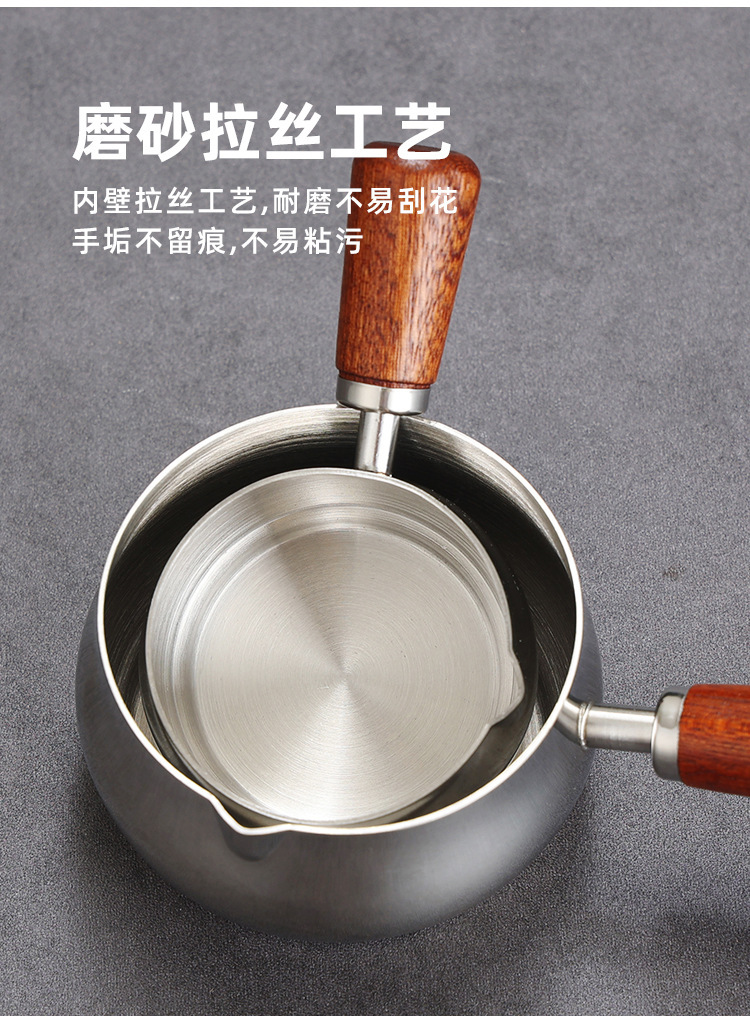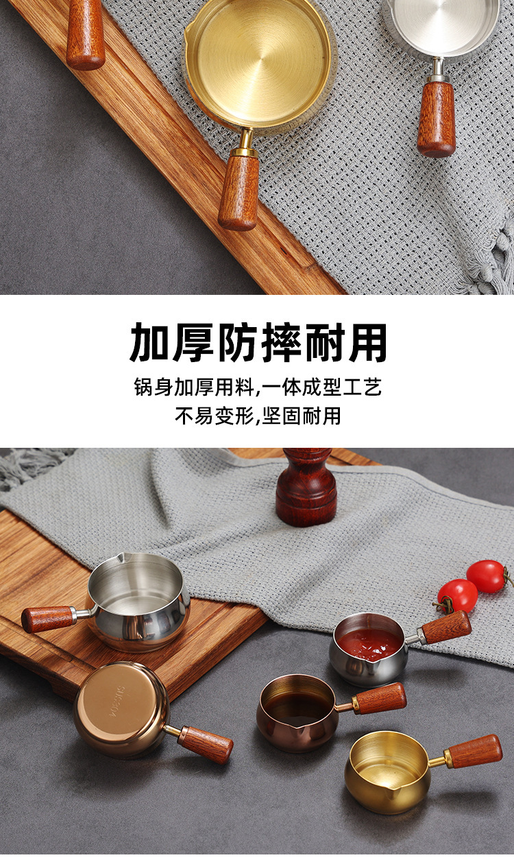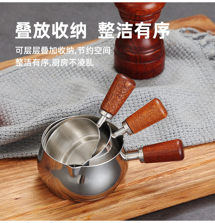 304不锈钢酱料杯木柄西餐酱汁盅牛扒调料杯木把手番茄沙拉蘸酱碟