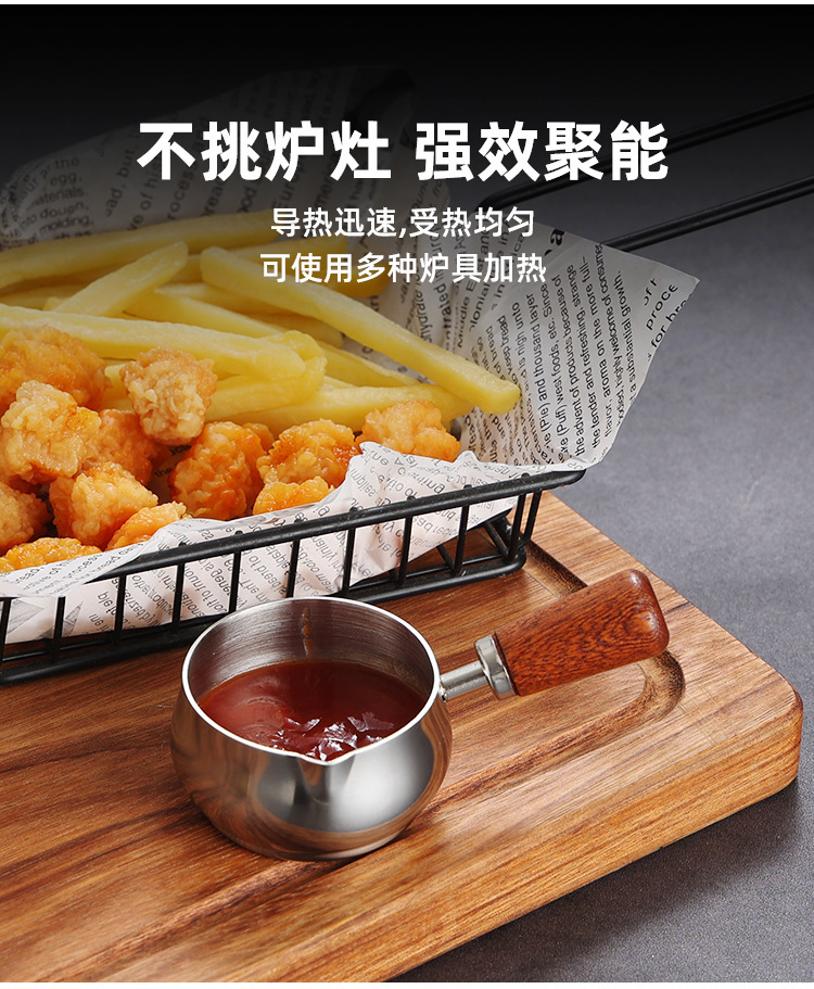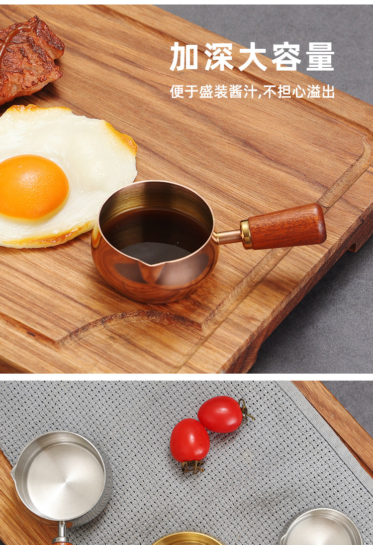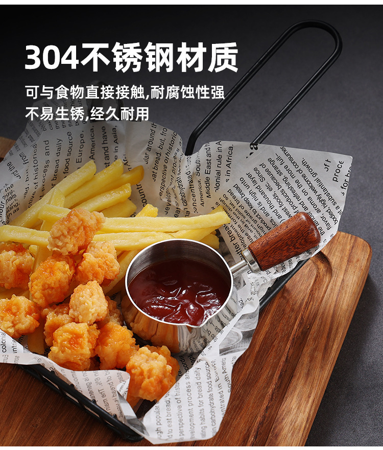 304不锈钢酱料杯西餐酱汁盅木柄把手牛扒调料杯番茄沙拉蘸酱碟子