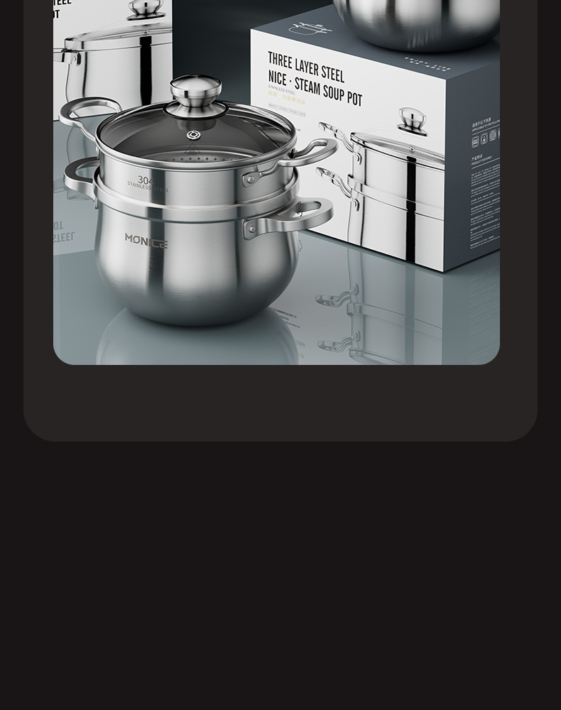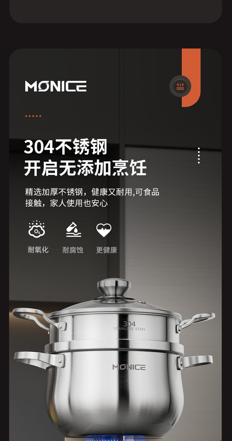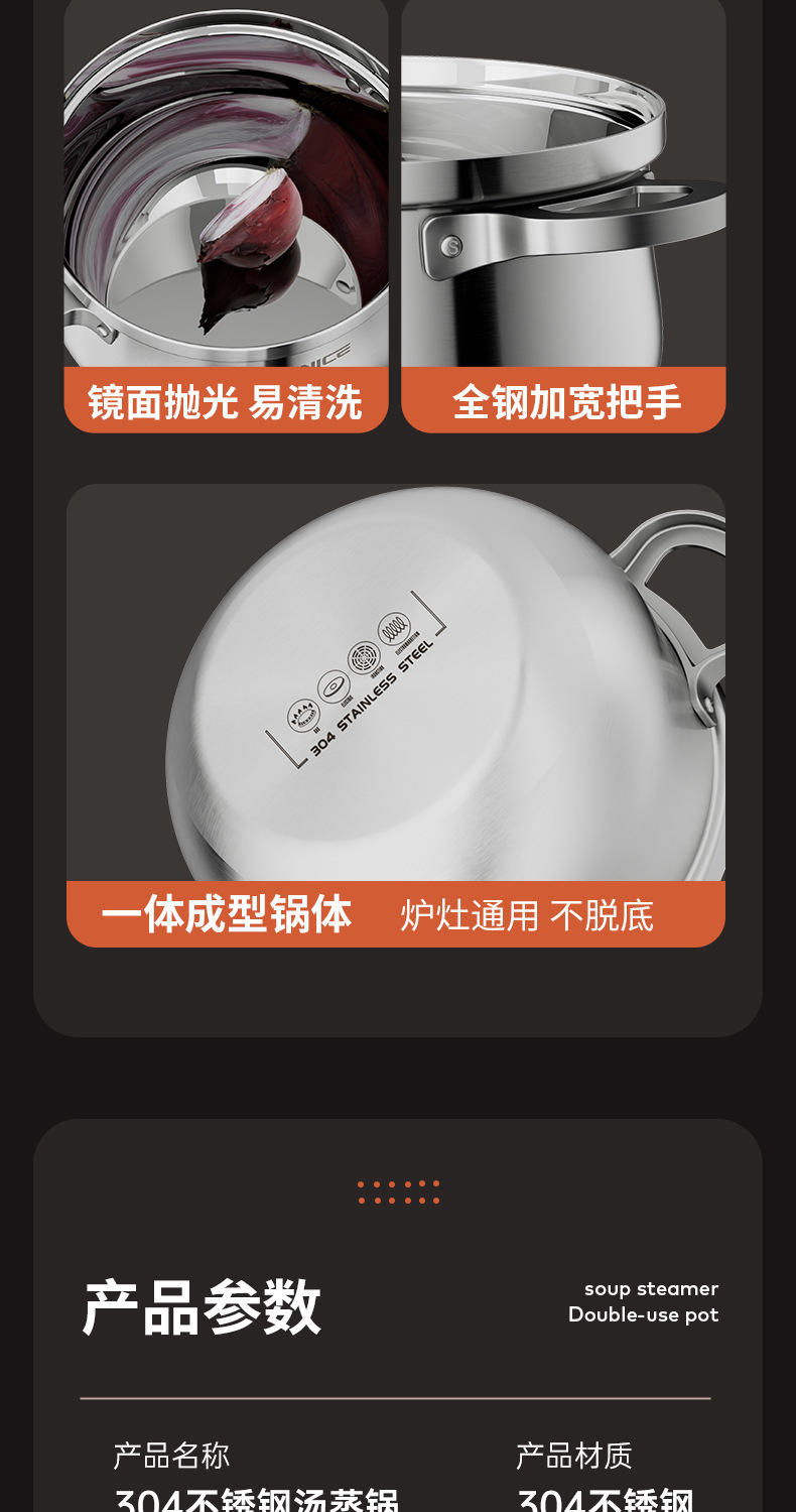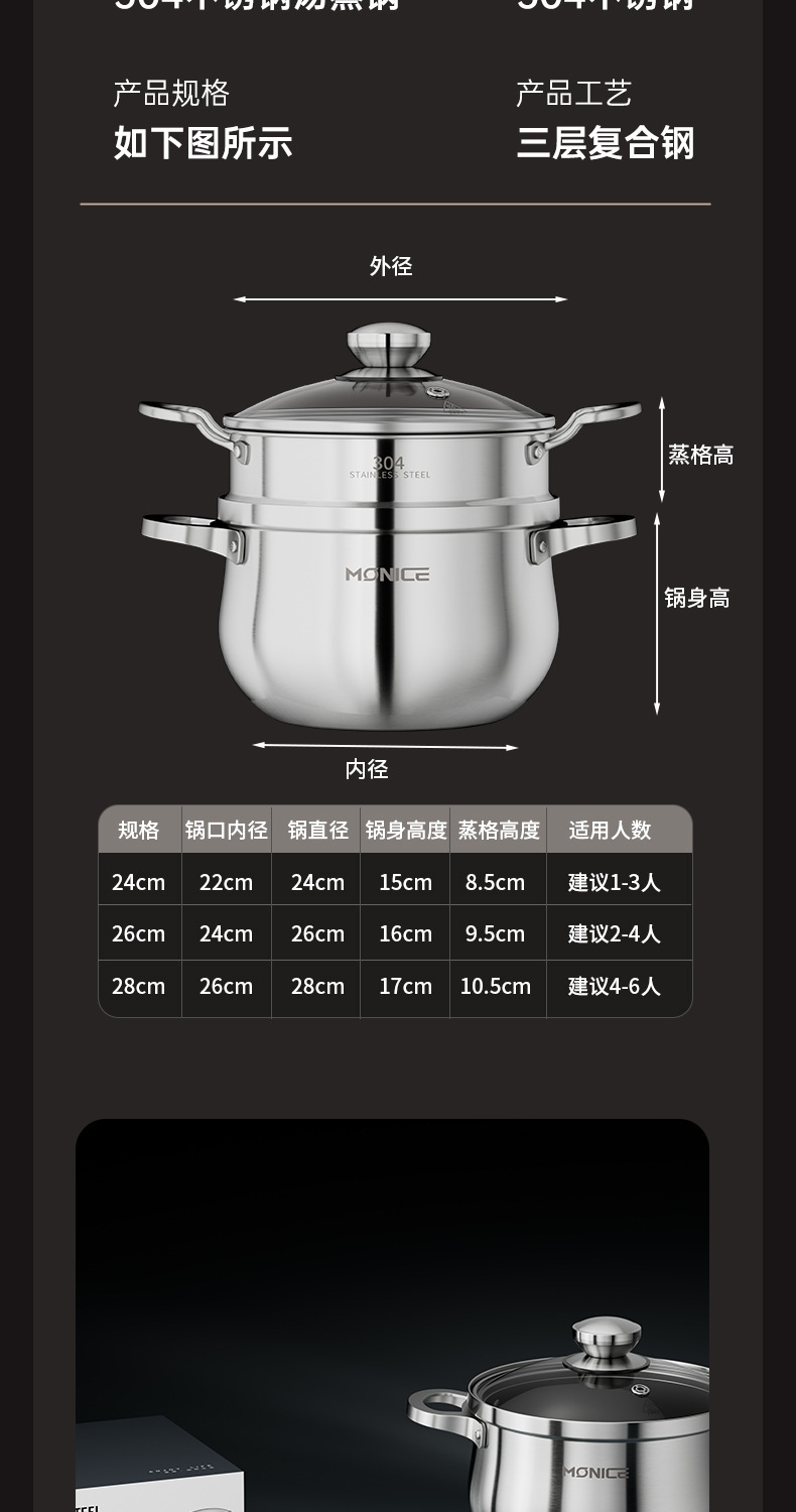 ステンレス製スープポット304三層鋼膨張型防溢蒸し調理麺鍋スープ大容量鍋蒸し調理両用