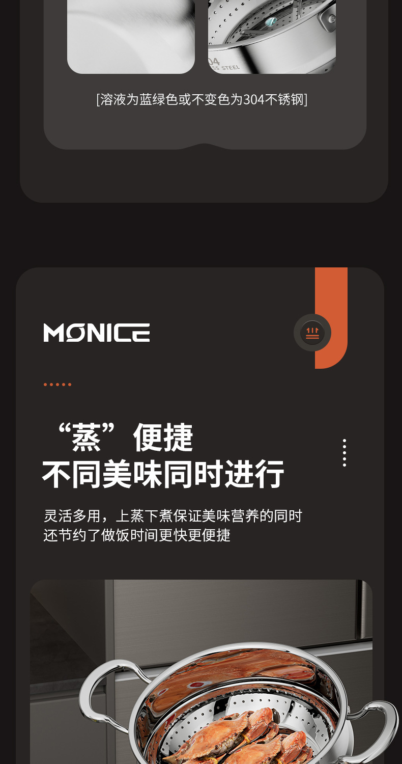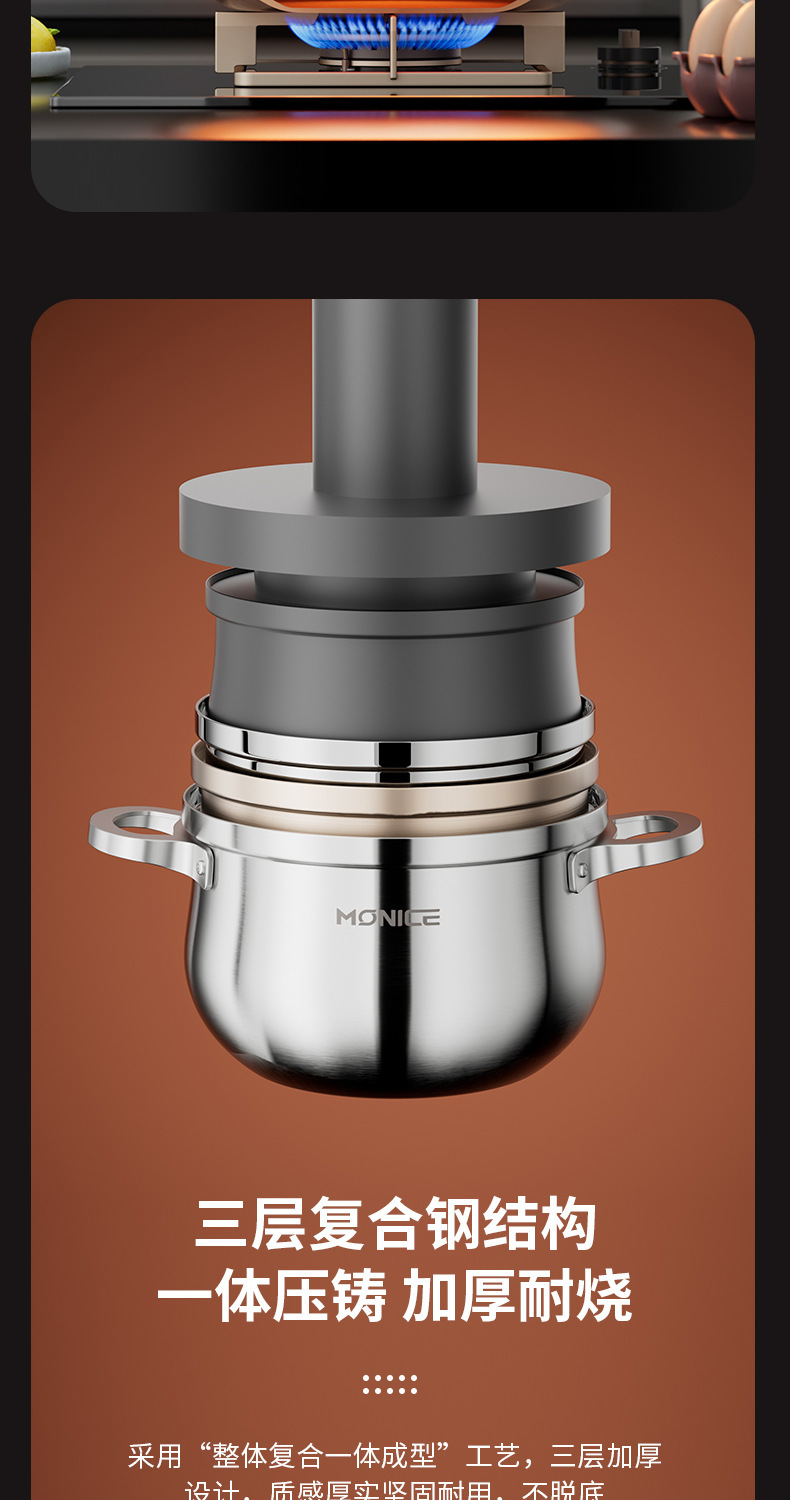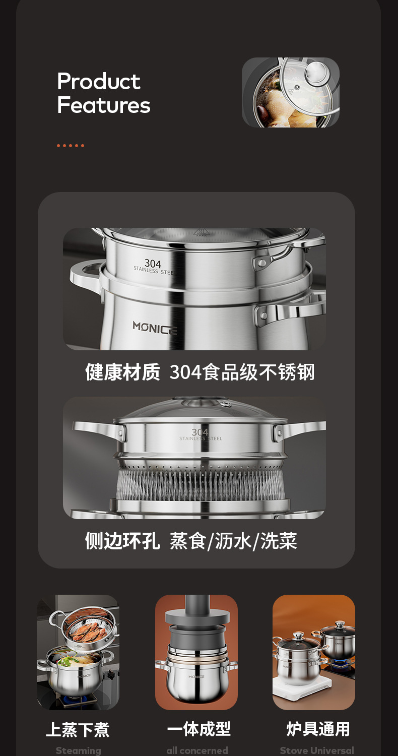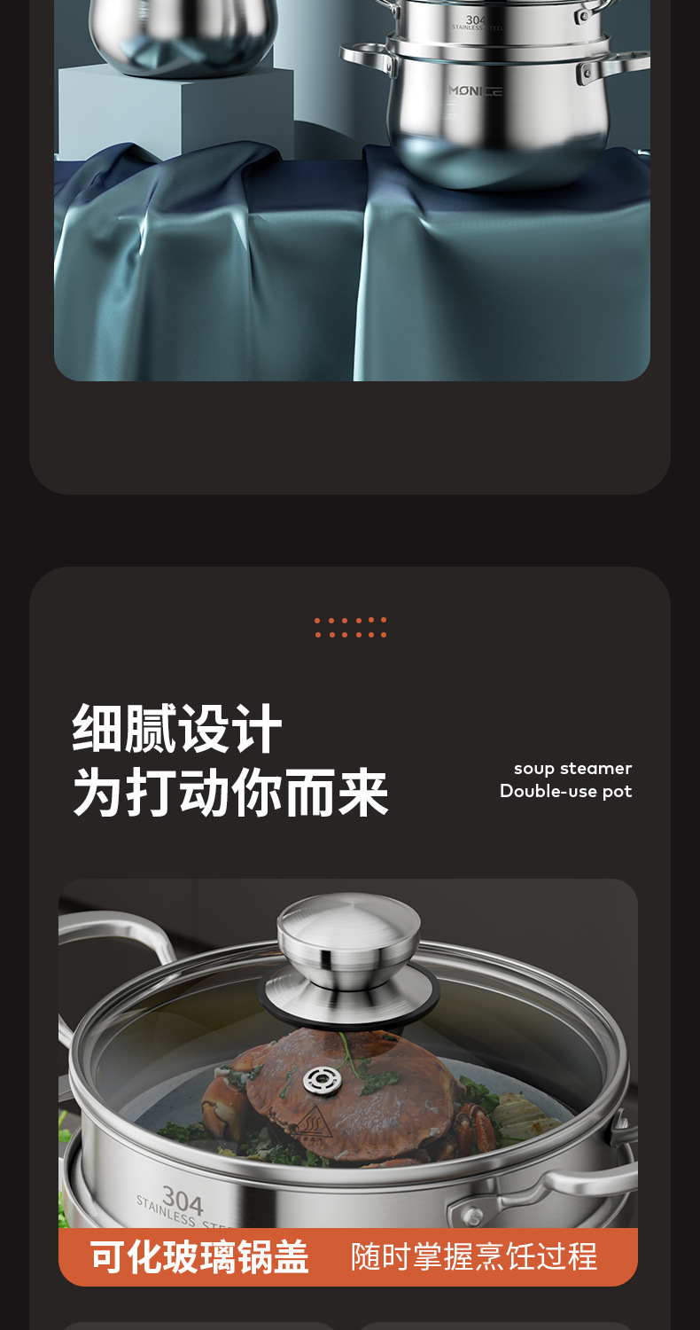 ステンレス製スープポット304三層鋼膨張型防溢蒸し調理麺鍋スープ大容量鍋蒸し調理両用