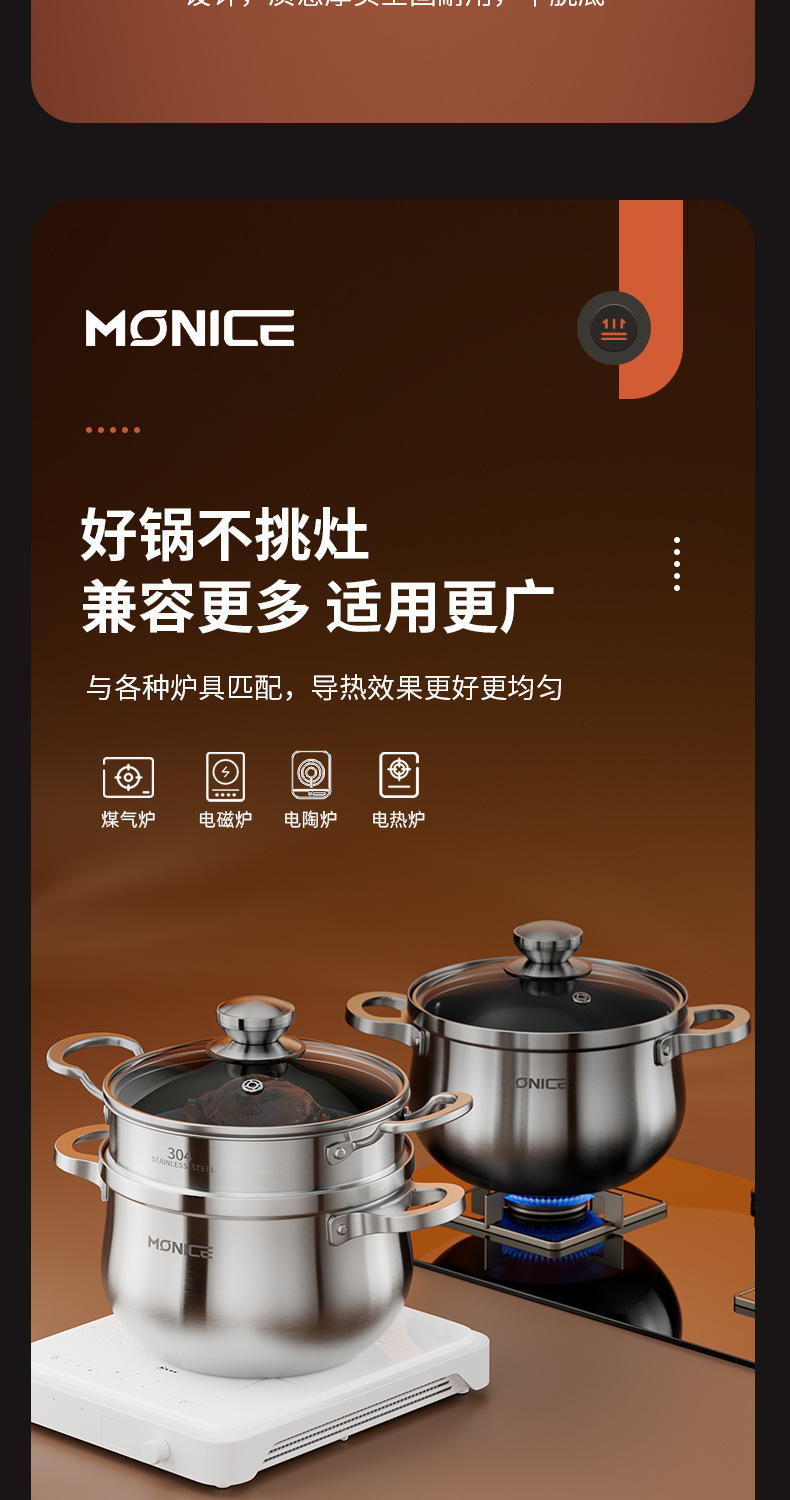 304不锈钢小奶锅特厚三层钢陶瓷奶锅带蒸格家用小锅汤锅泡面锅