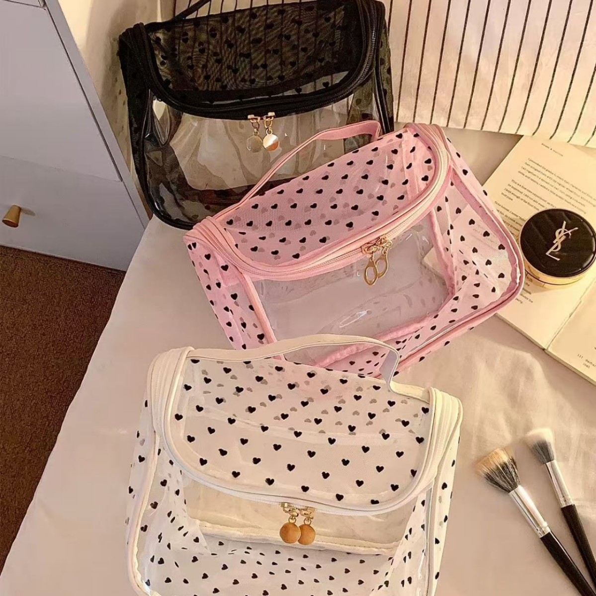新型日韓少女ネット糸透明愛化粧バッグ洗面バッグ化粧ブラシ収納バッグ筆袋クロスボーダーメーカー