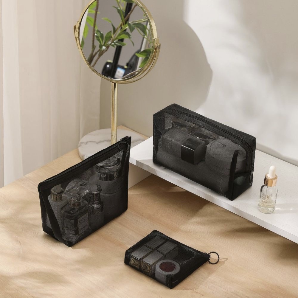 透明メッシュ化粧品バッグ、旅行用バスアメニティバッグ、学生用収納バッグ、ハンドバッグ、ポータブルトイレタリーバッグ