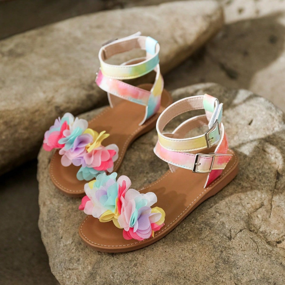 国境を越えた貿易子供用サンダルオープントゥカジュアルコントラストカラー平底ガールズビーチソフトソールサンダル