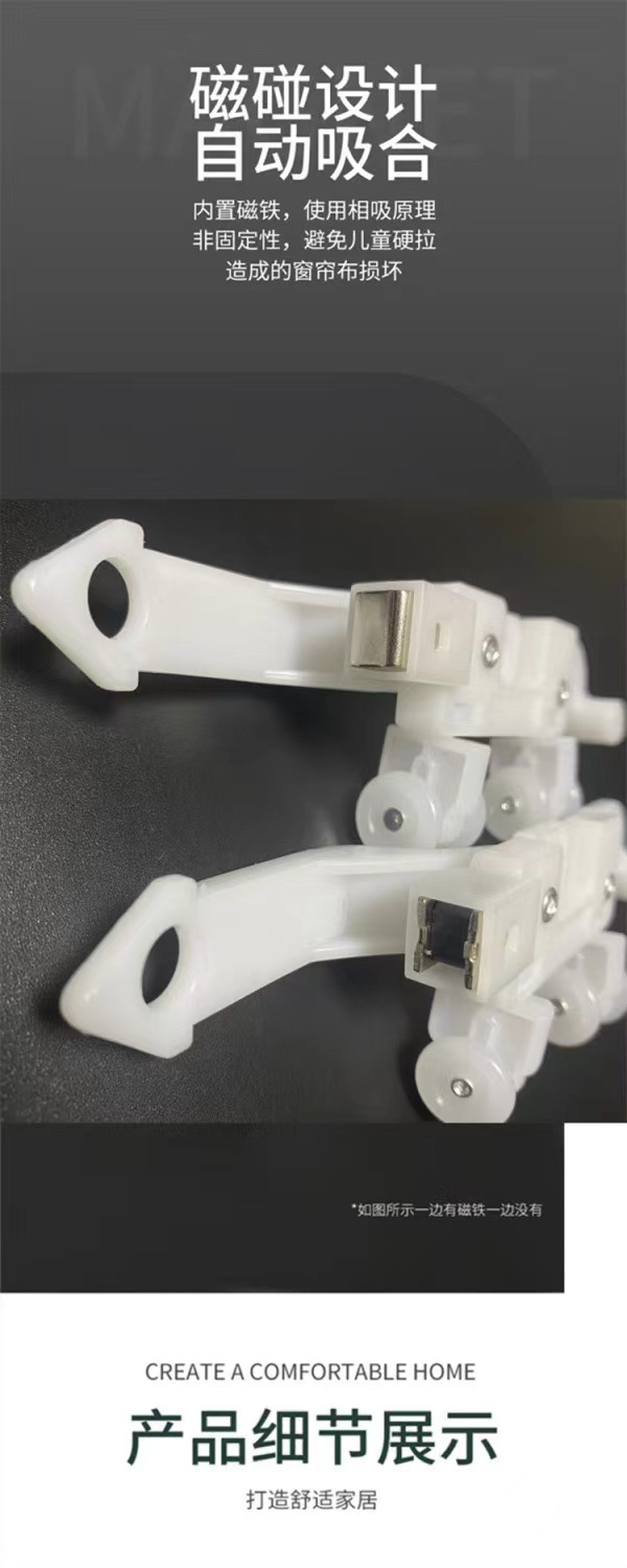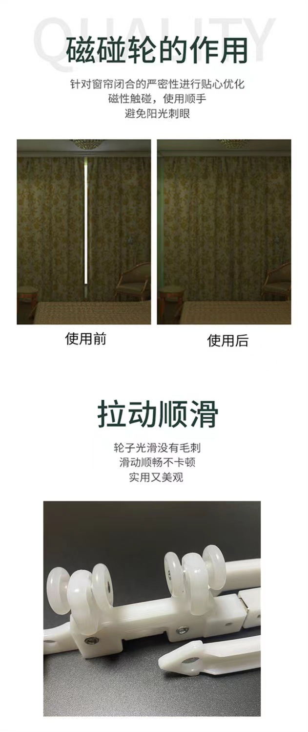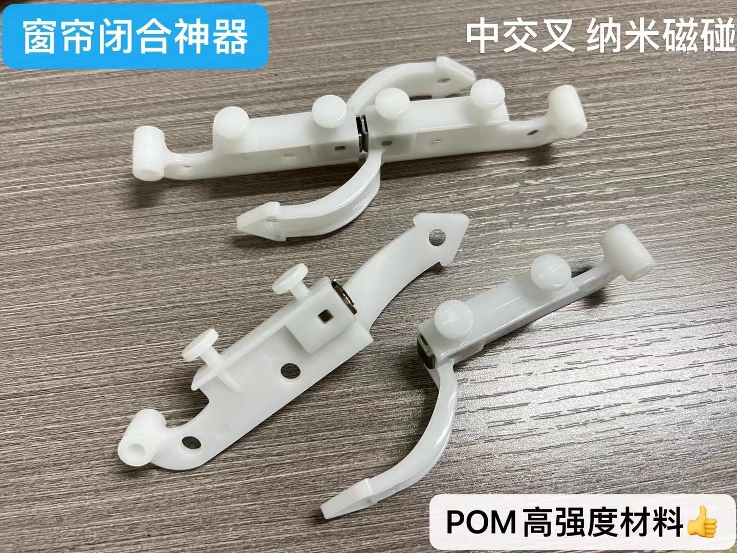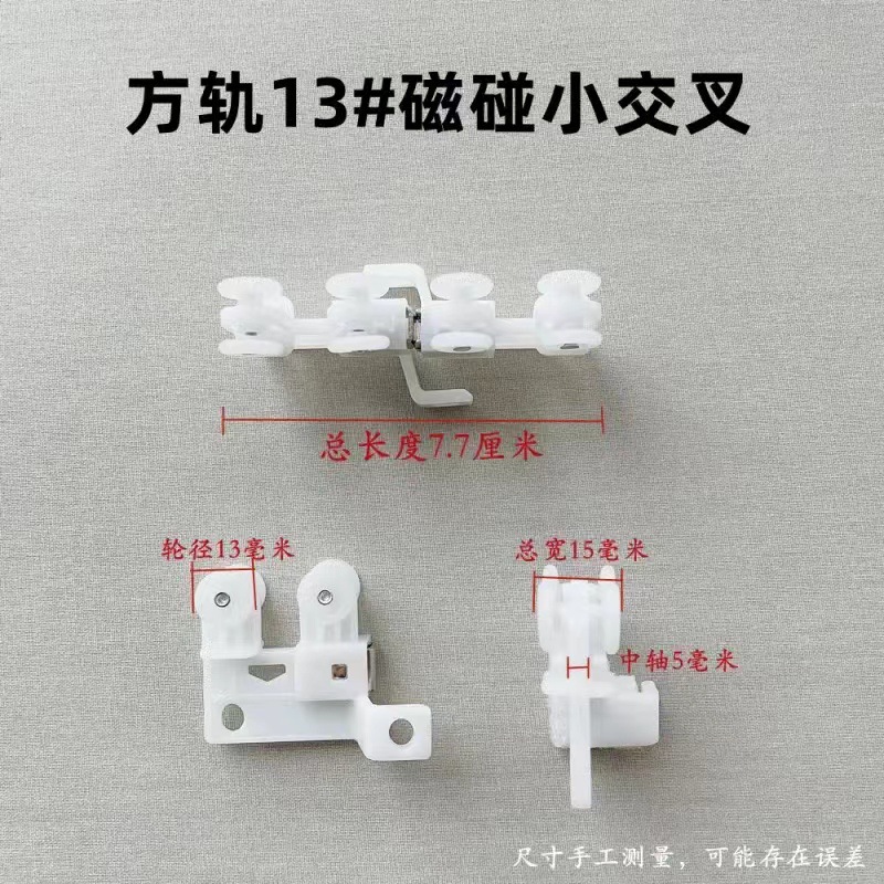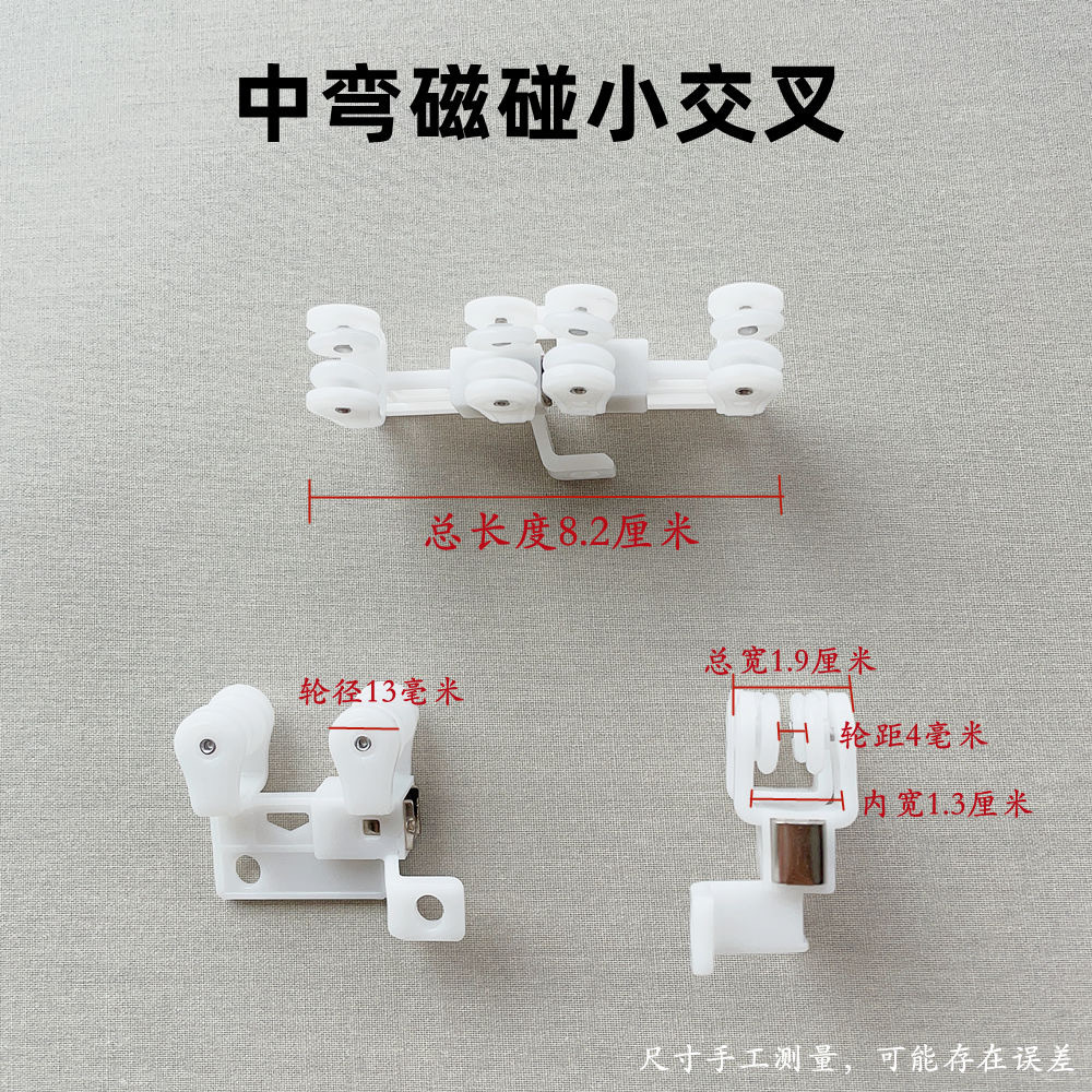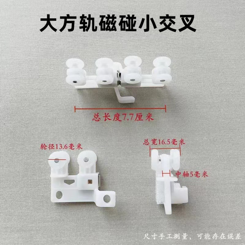 窗帘轨道配件交叉磁碰闭合防漏光滑轮方轨弯轨pom磁铁滑轮批发
