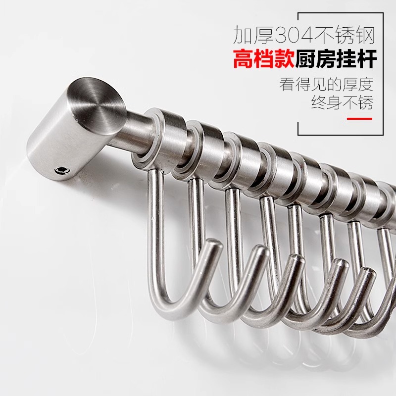 厚く長くなったキッチンモバイル吊りロッドステンレス鋼 304S フック壁掛け可動フックペンダント収納ラック