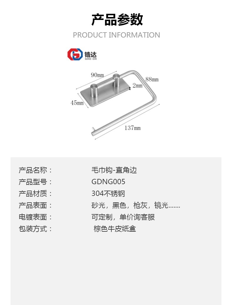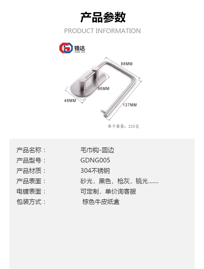 新会区司前镇锆达五金制品厂坐落于江门市新会区司前镇东兴里村,工厂于2014年开始从事于五金加工制造行业,在行业经验已达到九年,经过员工的勤劳务实奋斗,长期积累金属加工经验知识,现已形成一支专业生产不锈钢制品的团队,本厂厂房面积1500平米,有机加车间,焊接车间,抛光车间,装配车间及原材料仓库,成品仓库,本厂主要生产浴室挂件,毛巾架,毛巾杆,纸巾架,马桶刷,衣钩等浴室五金制品,本厂长期与国内各大小厂家、商家合作,专业提供中高端品质的产品,合作范围内客户的长期的满意评价是对我们工厂水平的肯定,我们对客户的宗旨是做一个高效,稳定,增值的供应商,欢迎来电来访,希望能与您建立长期愉快的合作关系。