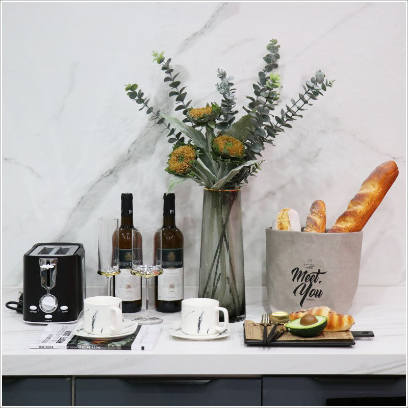 新商品のモデルルームトイレの民宿香薫が大理石のトレーセットを飾っています。