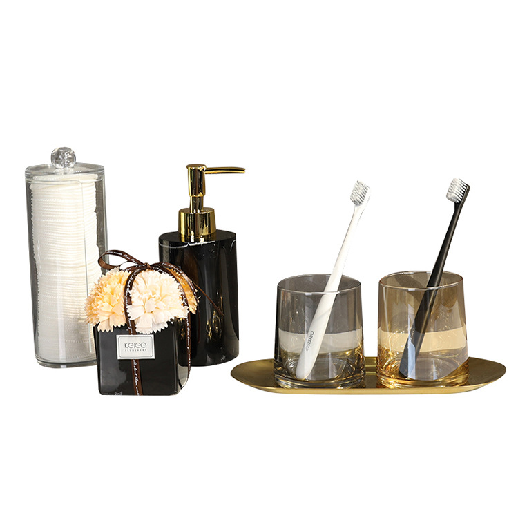 卫浴台面托盘套装新中式实木洗手液按压瓶花艺摆件样板房卫生间