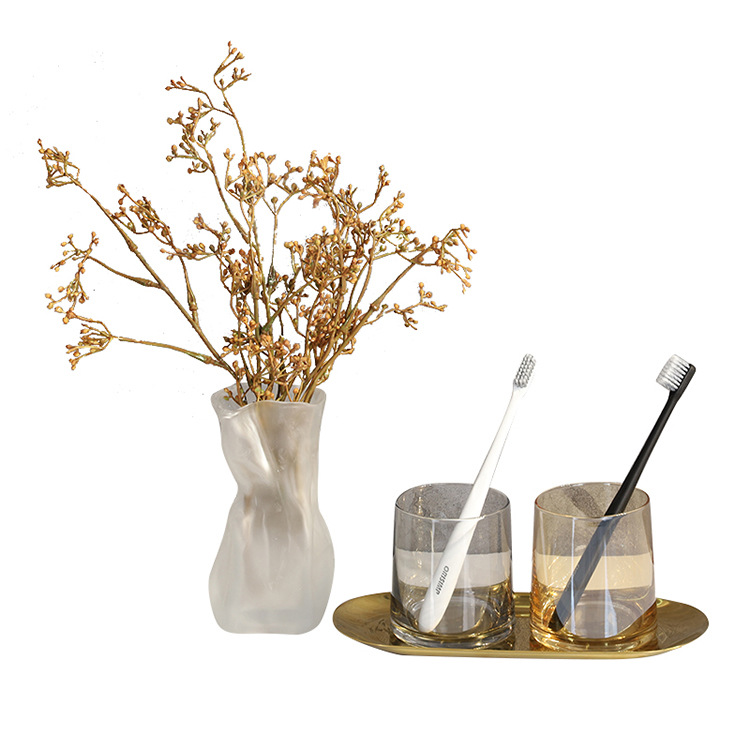 サンプルルームのトイレの浴室カウンターのシンプルな装飾品の洗面カップセットのトイレの花芸装飾品