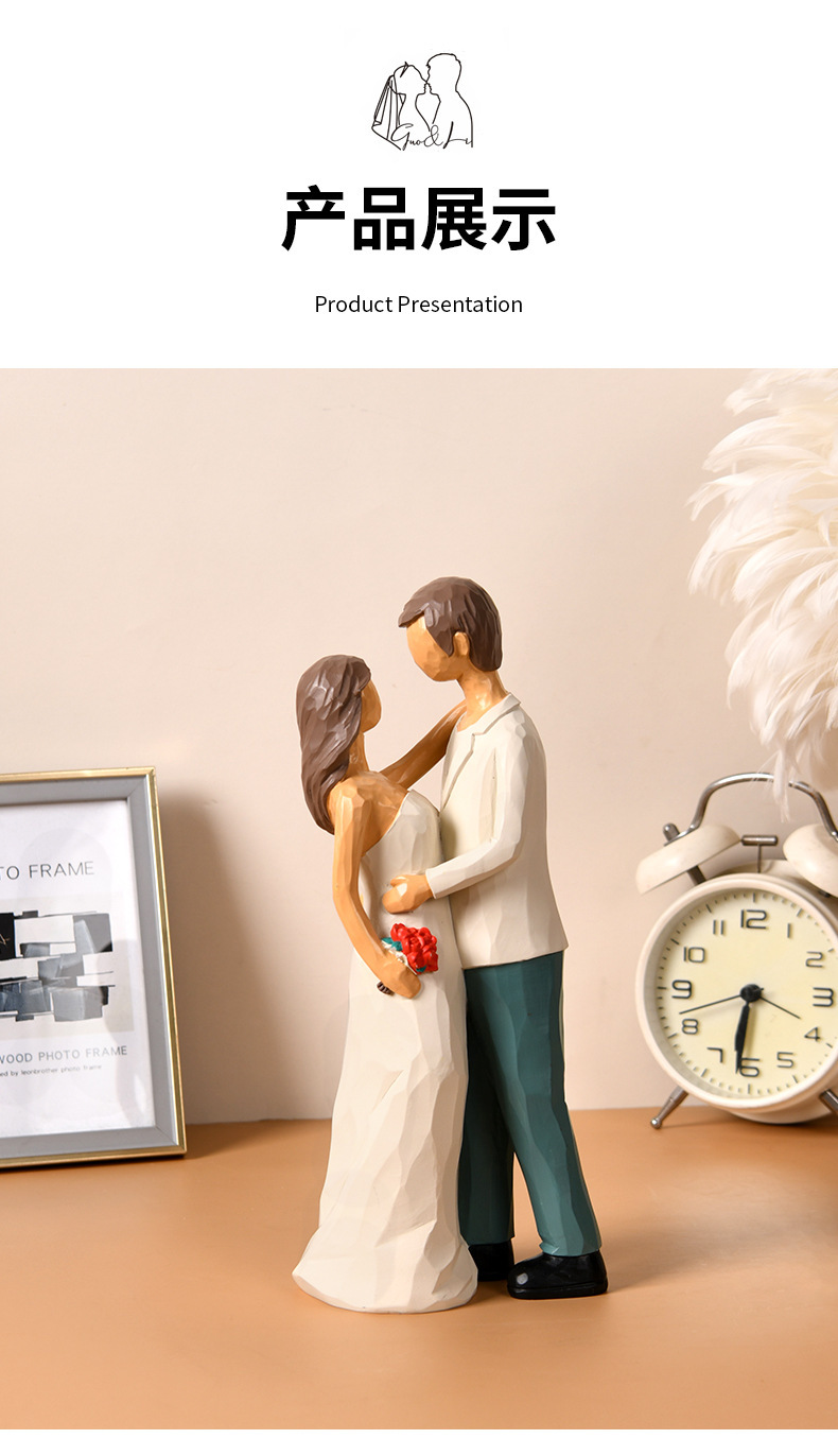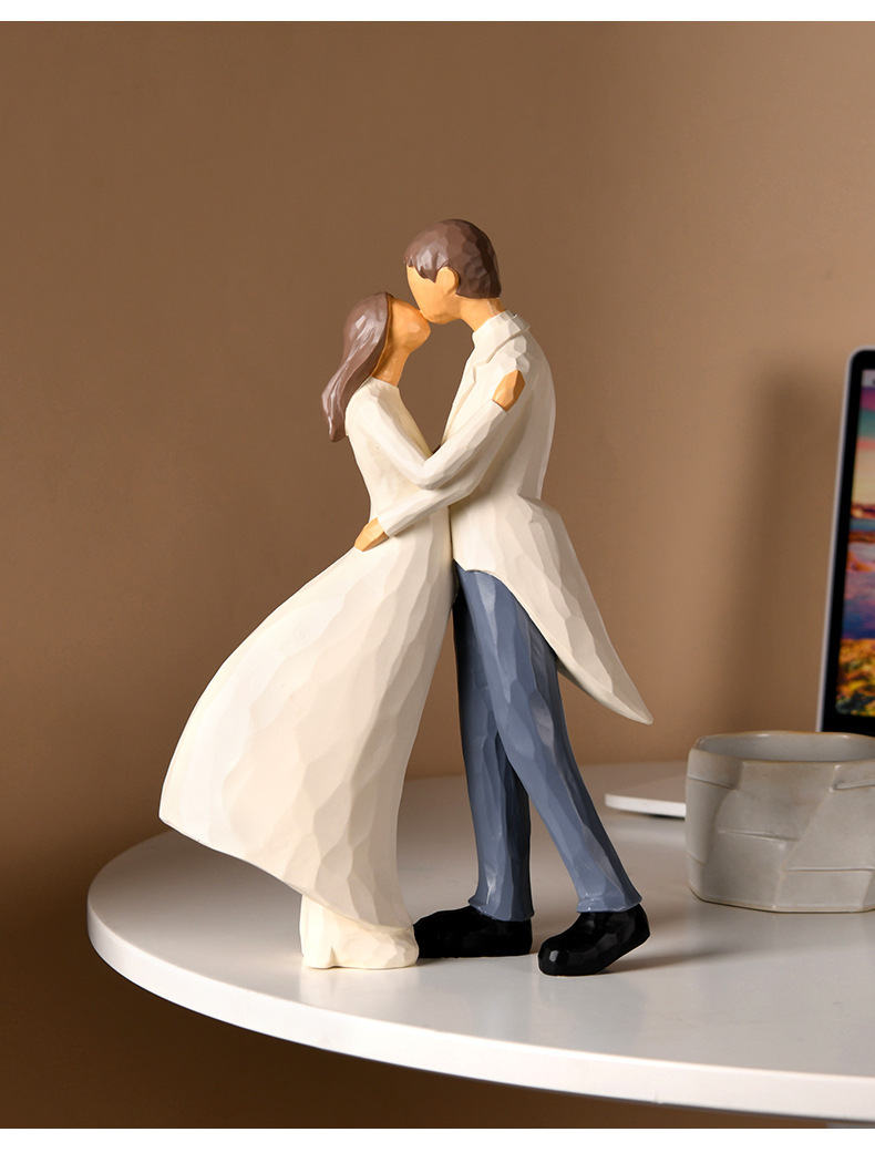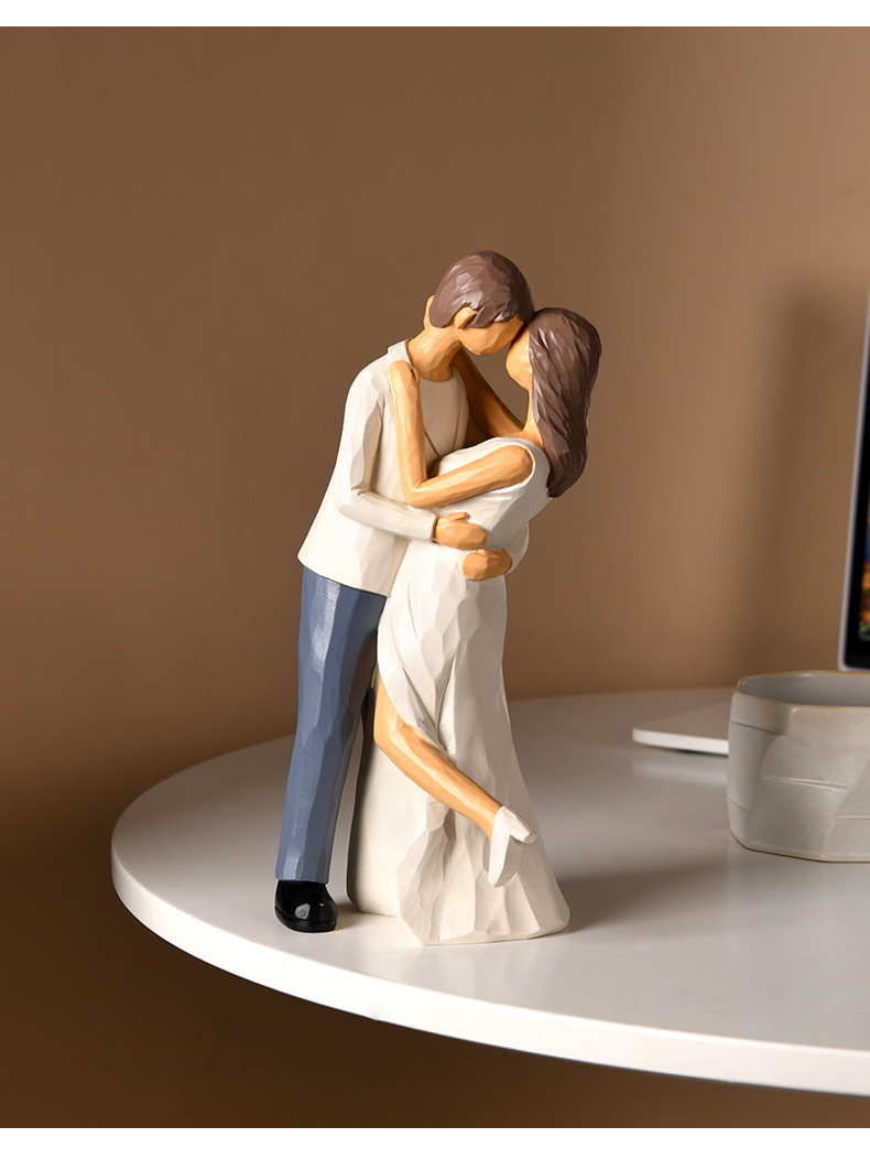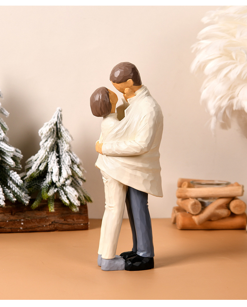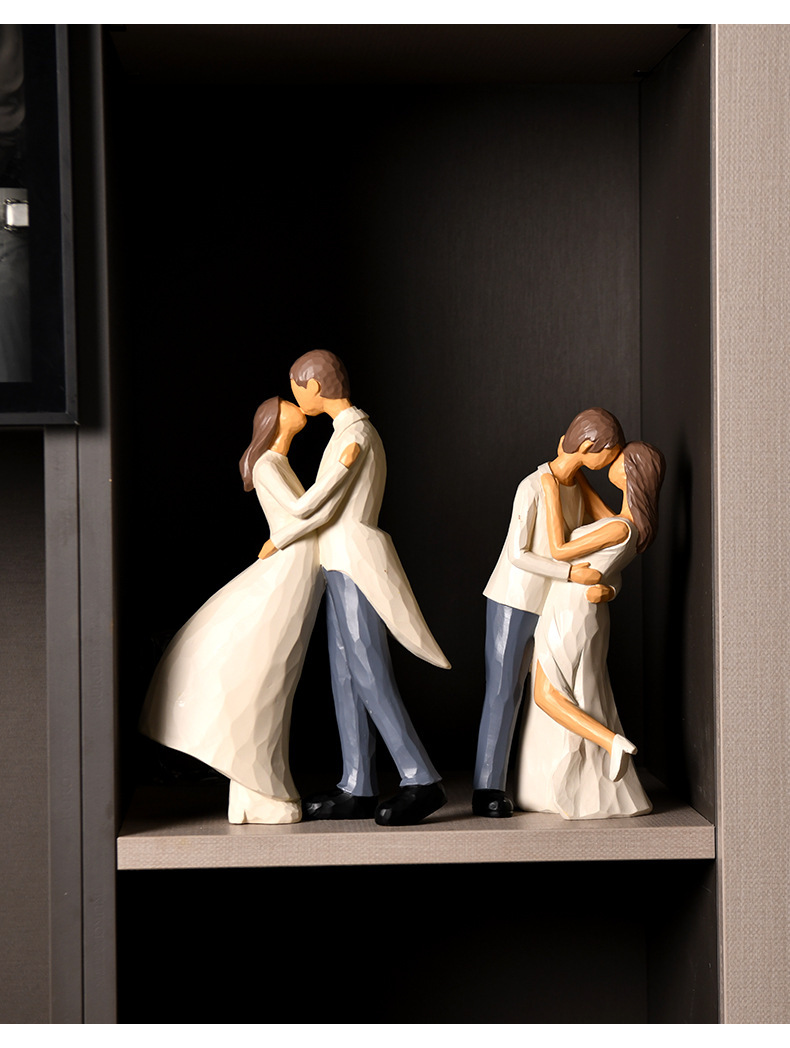 国境を越えた新しいバレンタインデーは木彫りのカップルの恋人が親密に樹脂工芸品の家庭装飾を飾っている