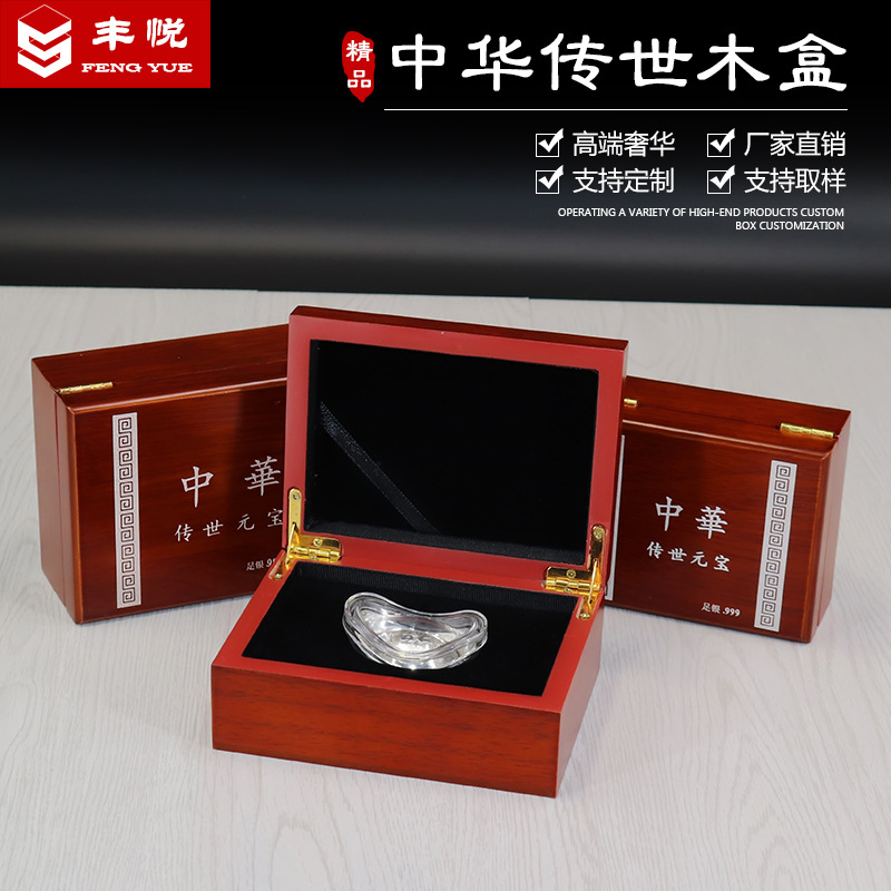 メーカー卸売カスタマイズされた中国シルバーインゴットテキストプレイハンドルピース木製コレクションギフトボックスレトロ装飾品包装木箱