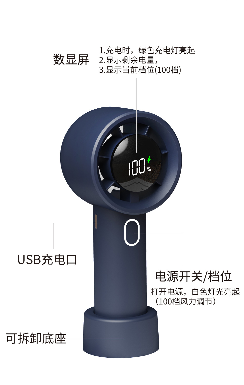 东南亚爆款221高速数显100档手持小风扇 usb充电便携迷你桌面风扇
