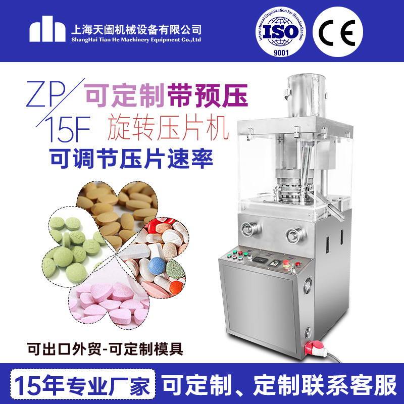 多冲旋转式压片机是我工厂研发的新型结构多冲压片机,具有压力大、操作简便、维护容易的特点。这款不锈钢旋转压片机适用于制药、化工、食品等领域。作为中型压片机,它能够压制制药片剂药片、食品、钙片等。颗粒压片机片重稳定,调节灵活,颗粒全自动旋转压片机设备精度高,运行平稳。转盘采用球墨铸铁 QT500 优质实心棒材制成,坚固耐用、耐热耐磨,性能稳定良好。上下双面设有双吸尘口和六个吸风口,除尘效果出色。